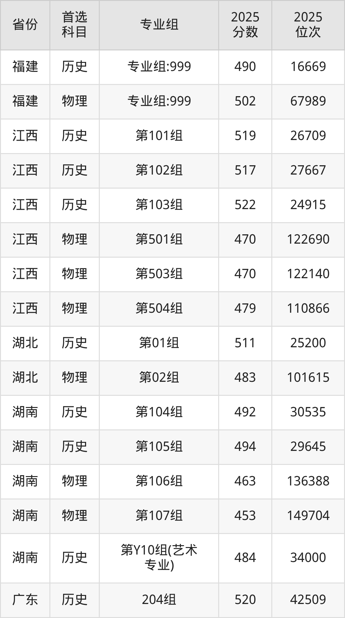 因为大部分地区目前只公布了院校(专业组)分数线,为了方便2026年考生参考,本文就整理出萍乡学院在全国各省不同科类的最低分:
