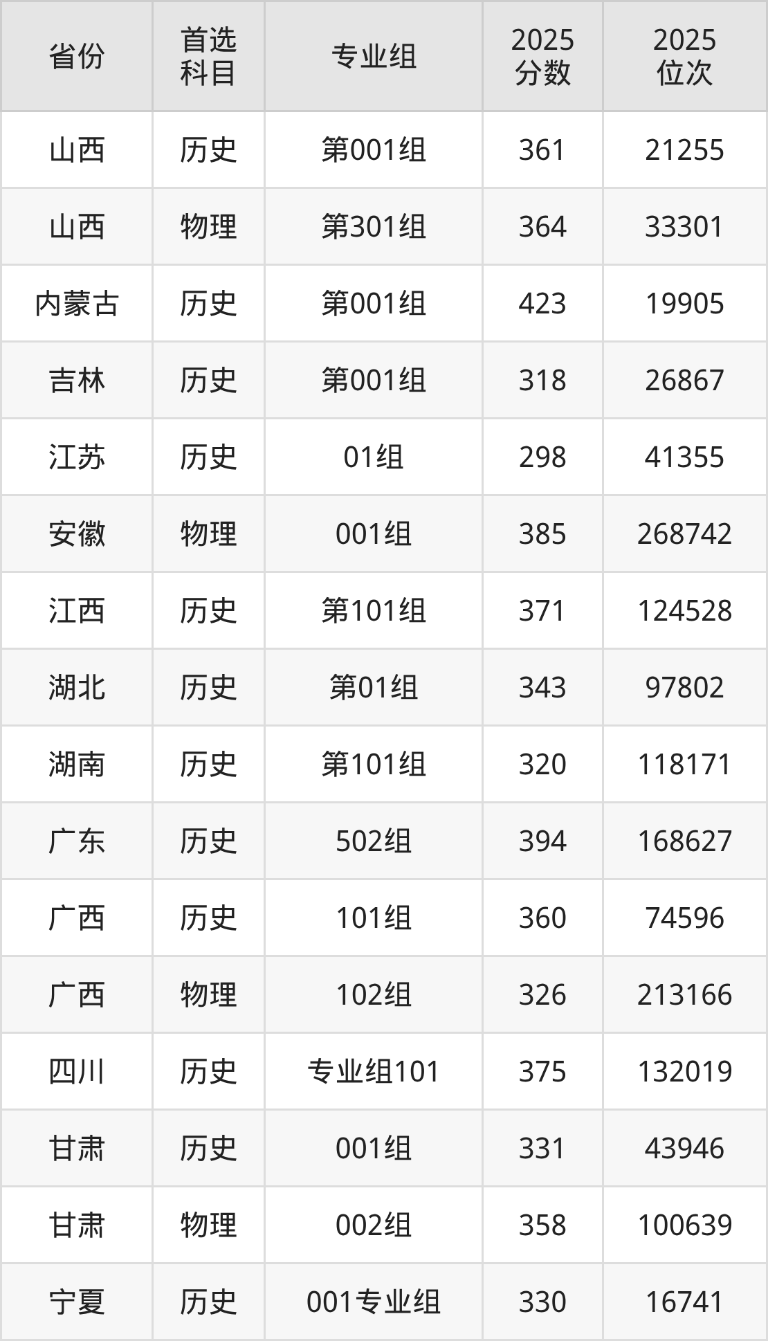 因为大部分地区目前只公布了院校(专业组)分数线,为了方便2026年考生参考,本文就整理出陕西工商职业学院在全国各省不同科类的最低分: