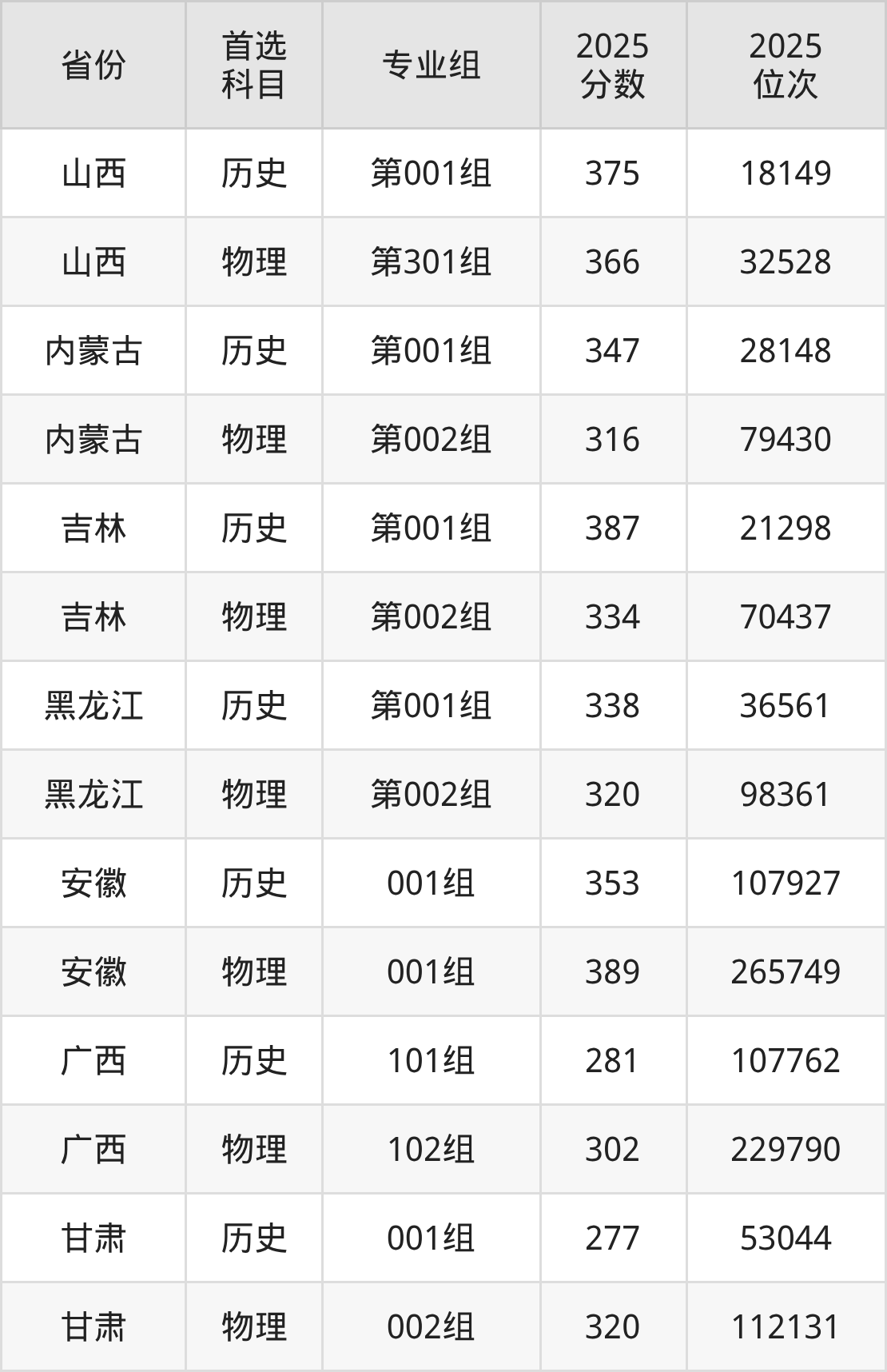 因为大部分地区目前只公布了院校(专业组)分数线,为了方便2026年考生参考,本文就整理出烟台汽车工程职业学院在全国各省不同科类的最低分:
