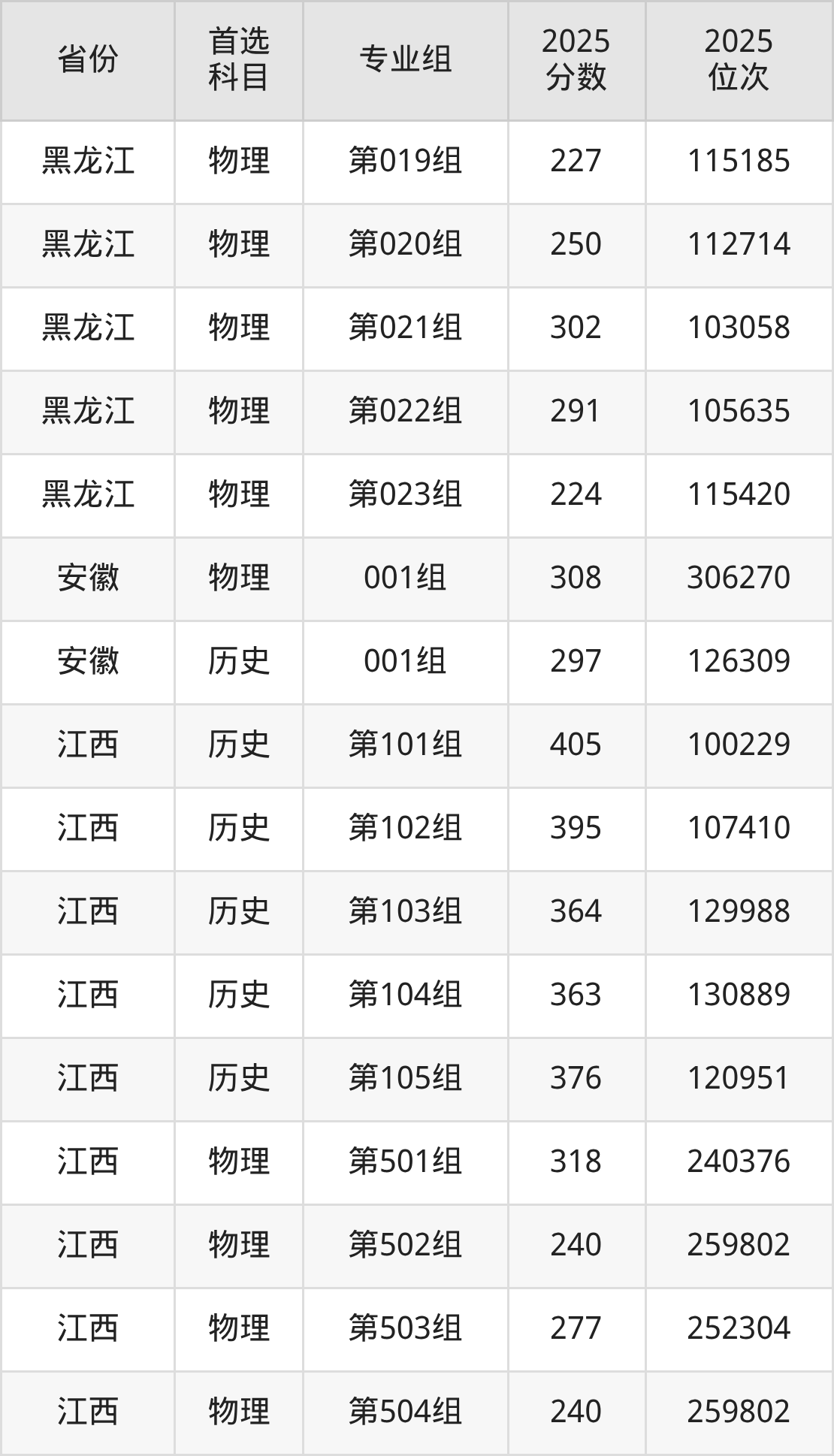 因为大部分地区目前只公布了院校(专业组)分数线,为了方便2026年考生参考,本文就整理出鹤岗师范高等专科学校在全国各省不同科类的最低分: