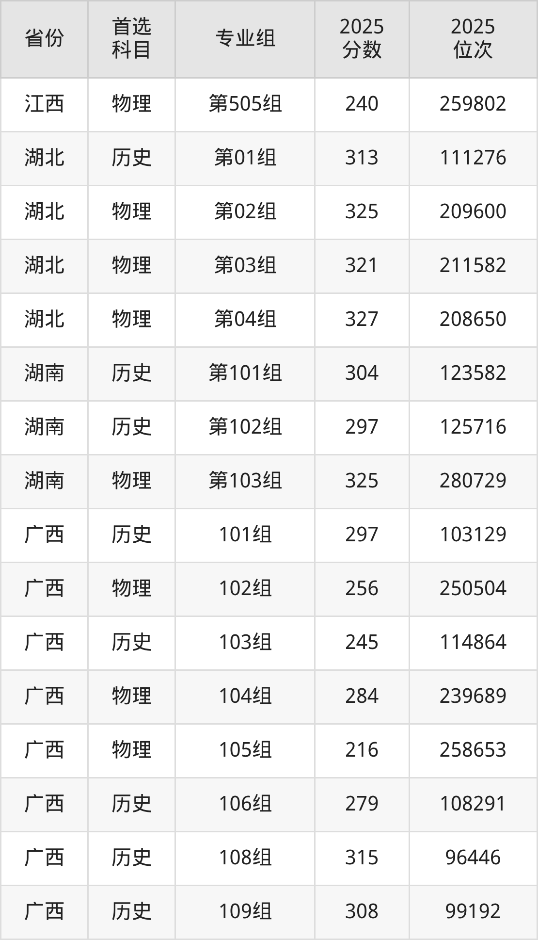 12.湖南:历史类297分、125716位,物理类325分、280729位