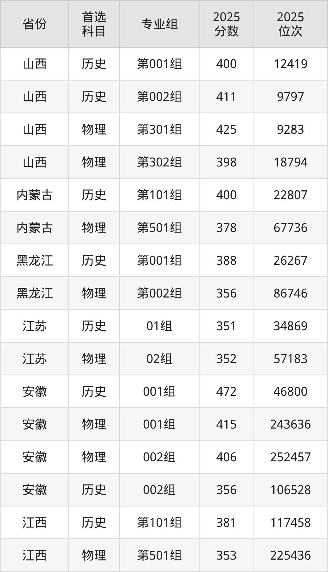 2.山西:历史类400分、12419位,物理类398分、18794位