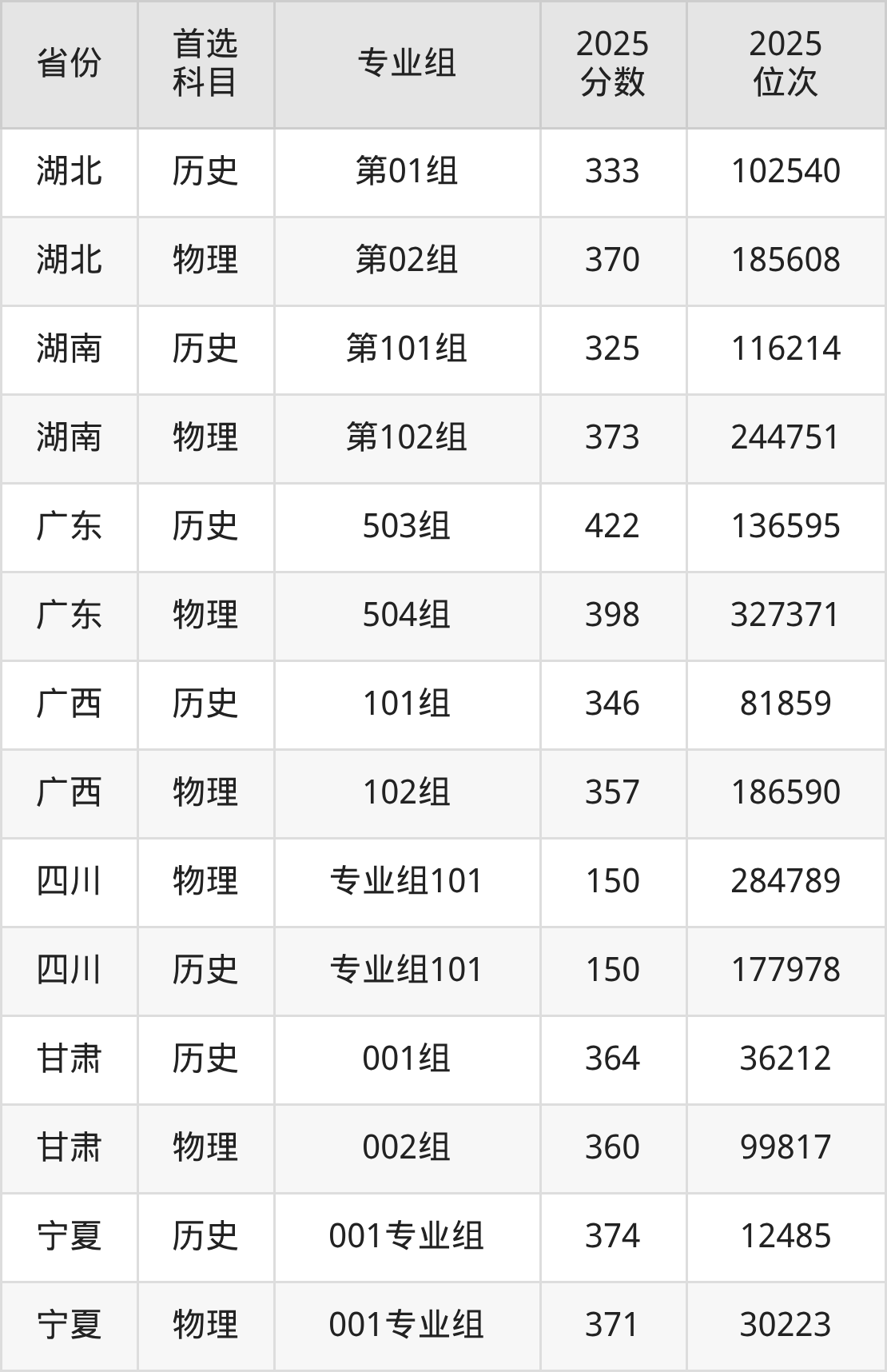因为大部分地区目前只公布了院校(专业组)分数线,为了方便2026年考生参考,本文就整理出广元中核职业技术学院在全国各省不同科类的最低分: