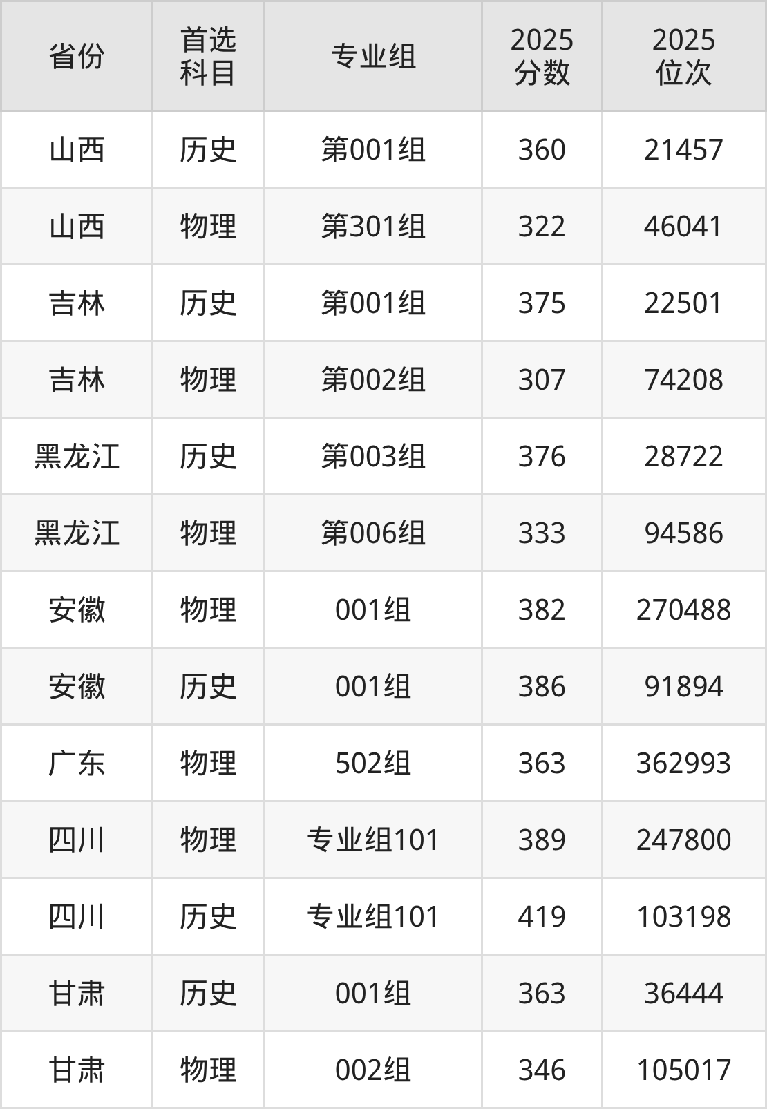 4.吉林:历史类375分、22501位,物理类307分、74208位