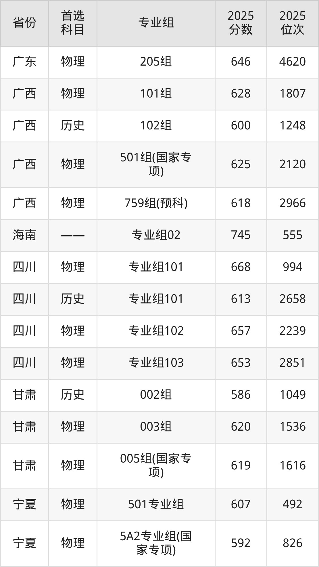 因为大部分地区目前只公布了院校(专业组)分数线,为了方便2026年考生参考,本文就整理出电子科技大学在全国各省不同科类的最低分: