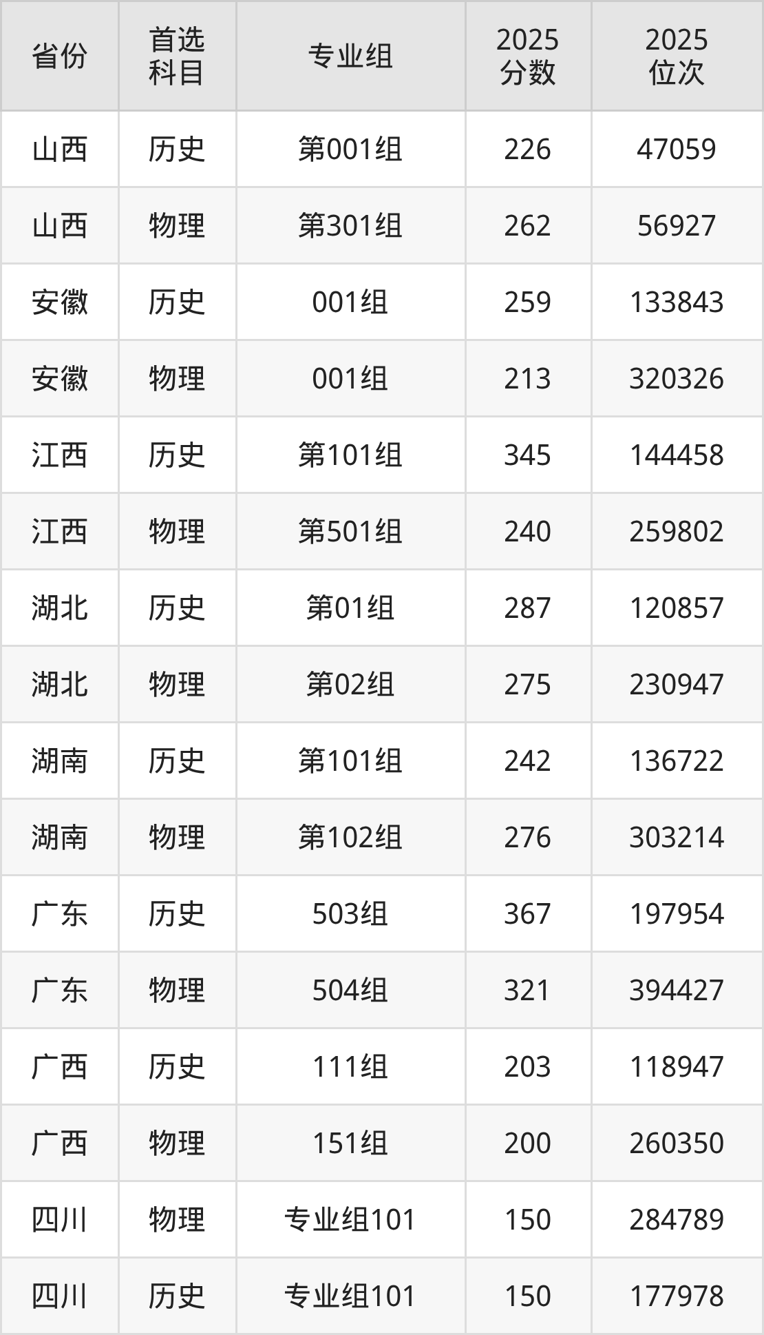 因为大部分地区目前只公布了院校(专业组)分数线,为了方便2026年考生参考,本文就整理出黄冈科技职业学院在全国各省不同科类的最低分: