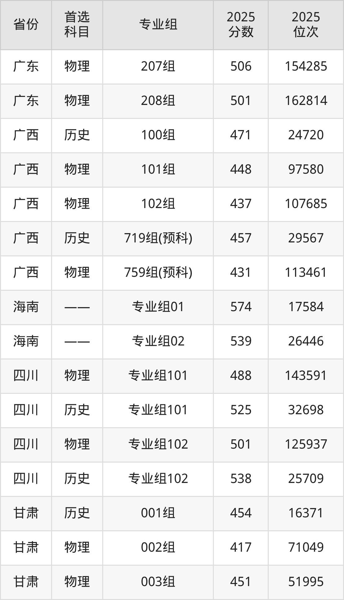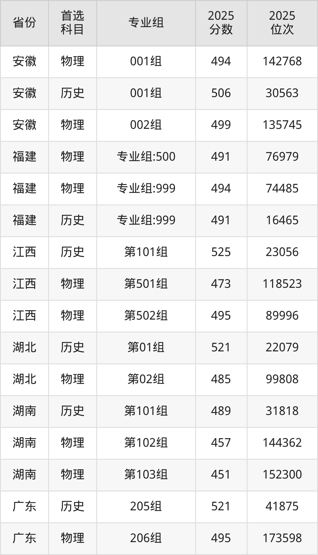 因为大部分地区目前只公布了院校(专业组)分数线,为了方便2026年考生参考,本文就整理出武夷学院在全国各省不同科类的最低分: