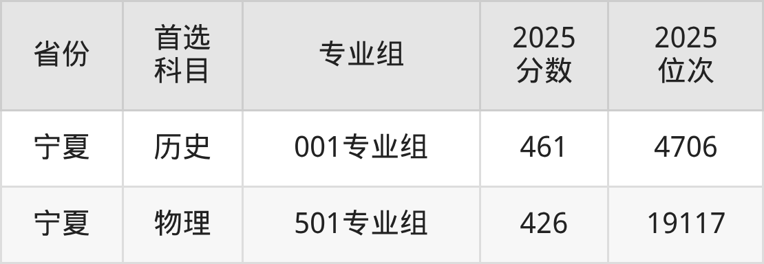 23.宁夏:历史类461分、4706位,物理类426分、19117位