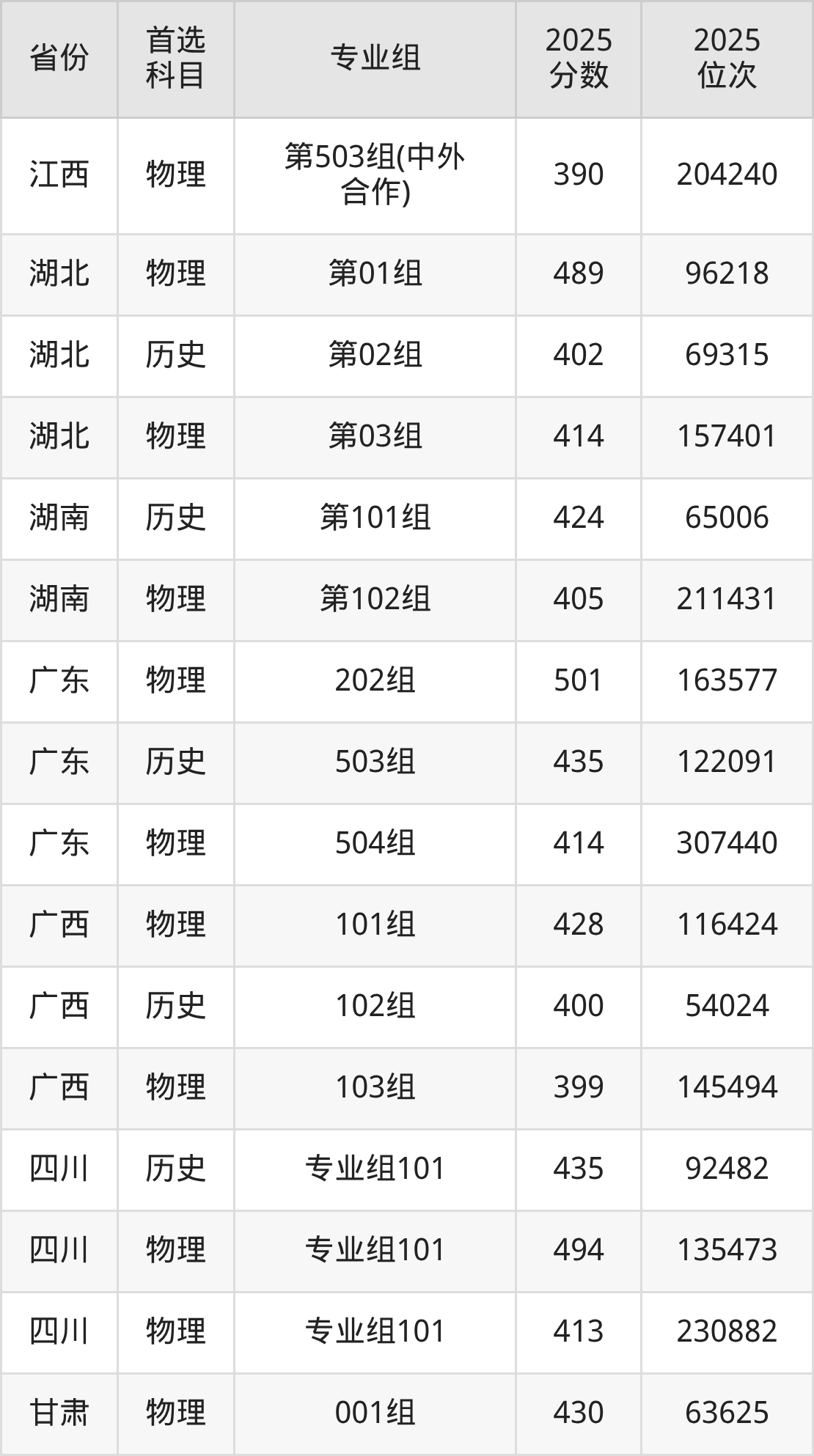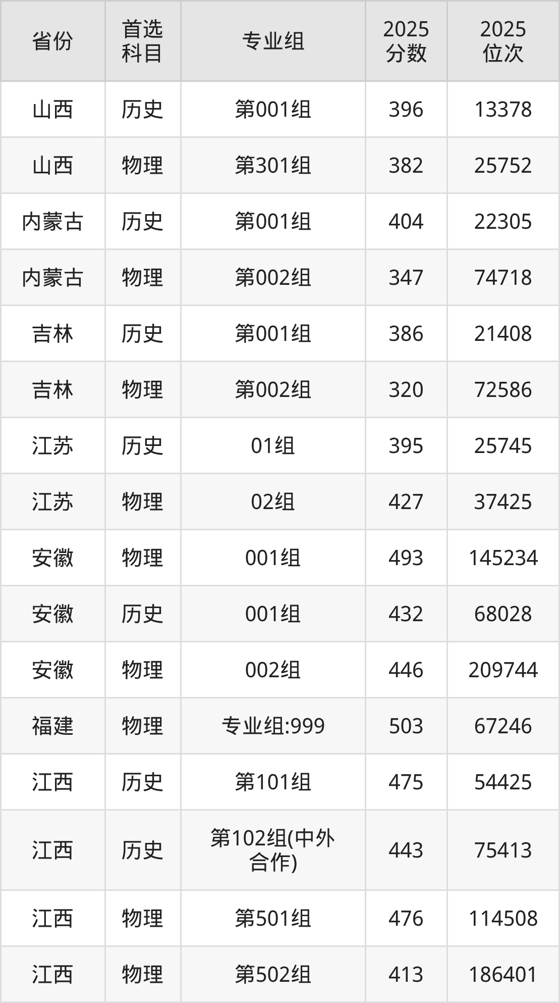 因为大部分地区目前只公布了院校(专业组)分数线,为了方便2026年考生参考,本文就整理出江西职业技术大学在全国各省不同科类的最低分: