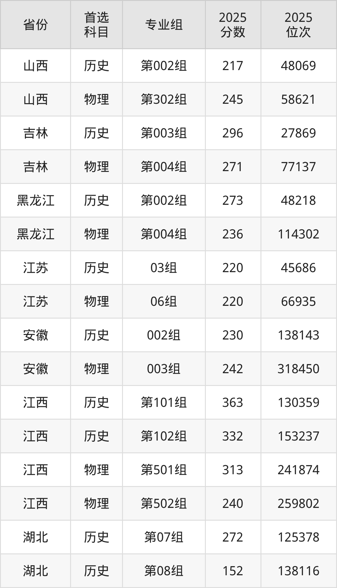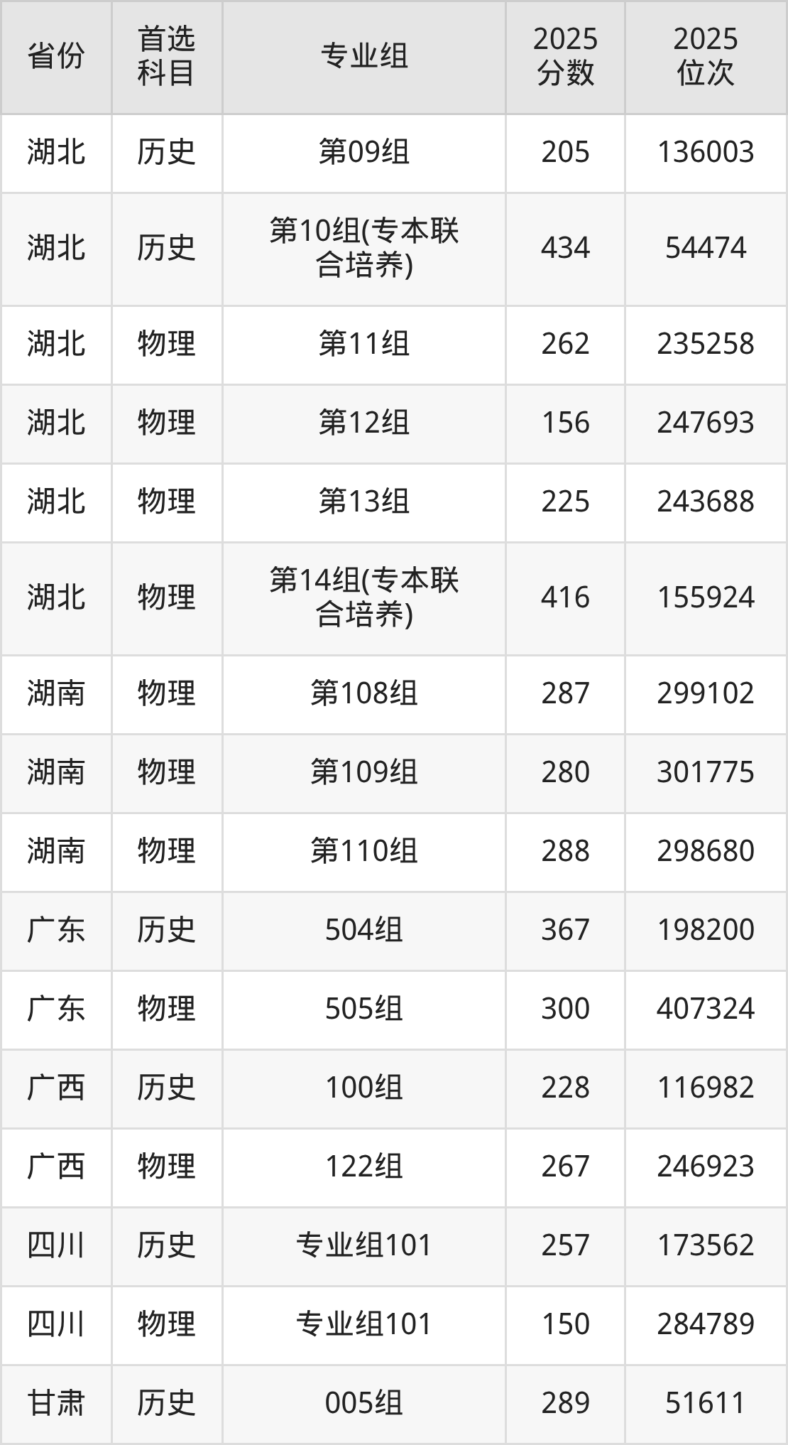 因为大部分地区目前只公布了院校(专业组)分数线,为了方便2026年考生参考,本文就整理出武昌职业学院在全国各省不同科类的最低分: