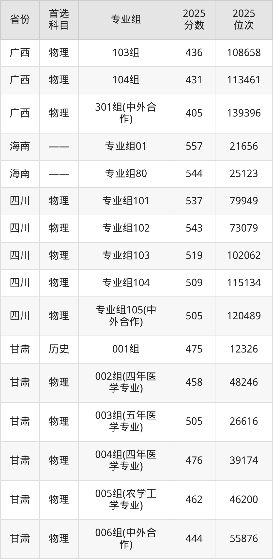 因为大部分地区目前只公布了院校(专业组)分数线,为了方便2026年考生参考,本文就整理出锦州医科大学在全国各省不同科类的最低分: