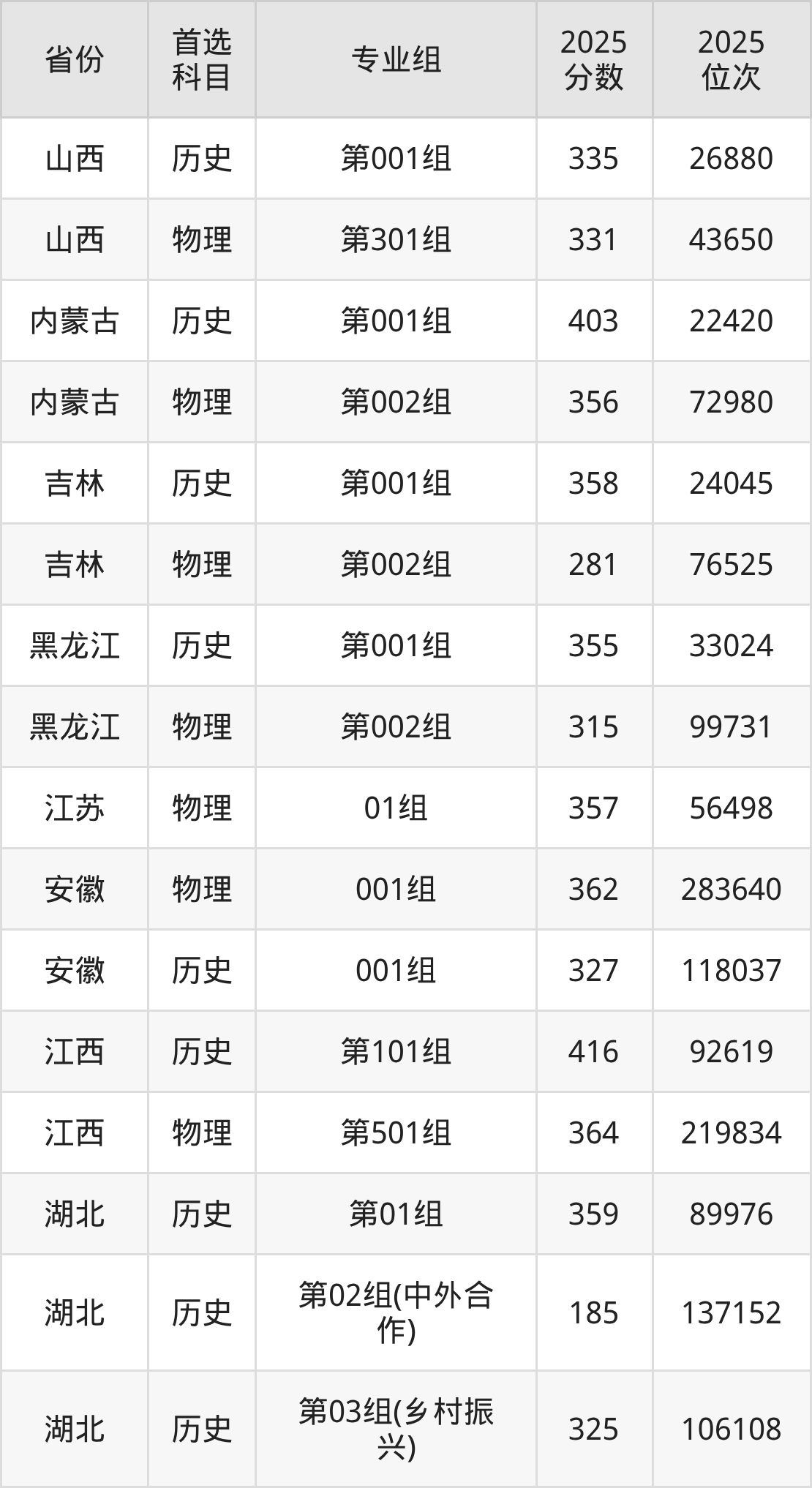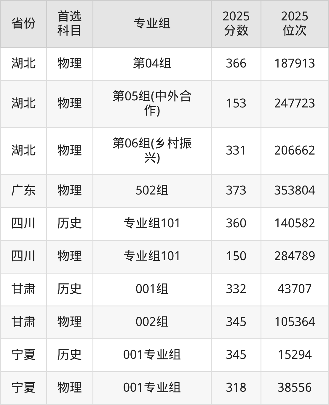 因为大部分地区目前只公布了院校(专业组)分数线,为了方便2026年考生参考,本文就整理出仙桃职业学院在全国各省不同科类的最低分: