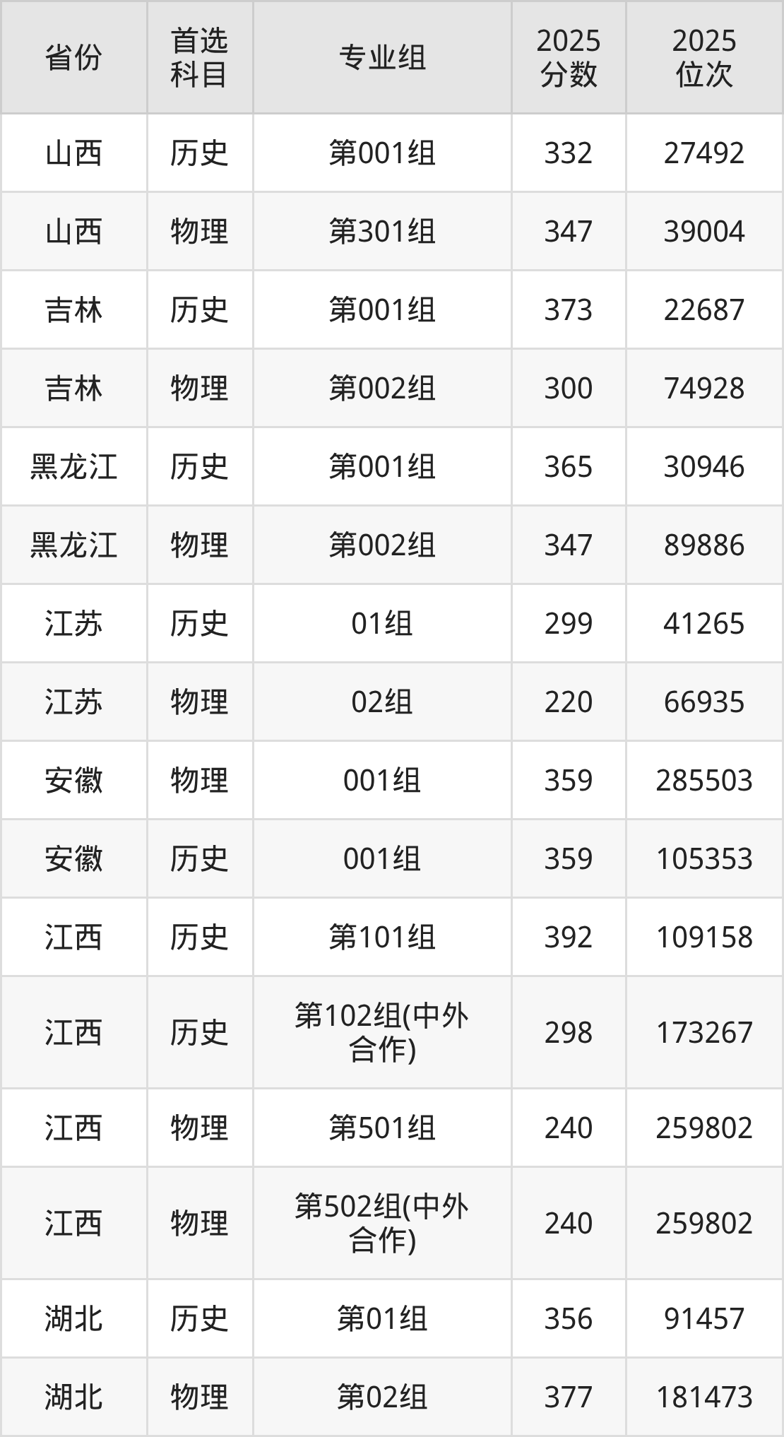 因为大部分地区目前只公布了院校(专业组)分数线,为了方便2026年考生参考,本文就整理出吉安职业技术学院在全国各省不同科类的最低分: