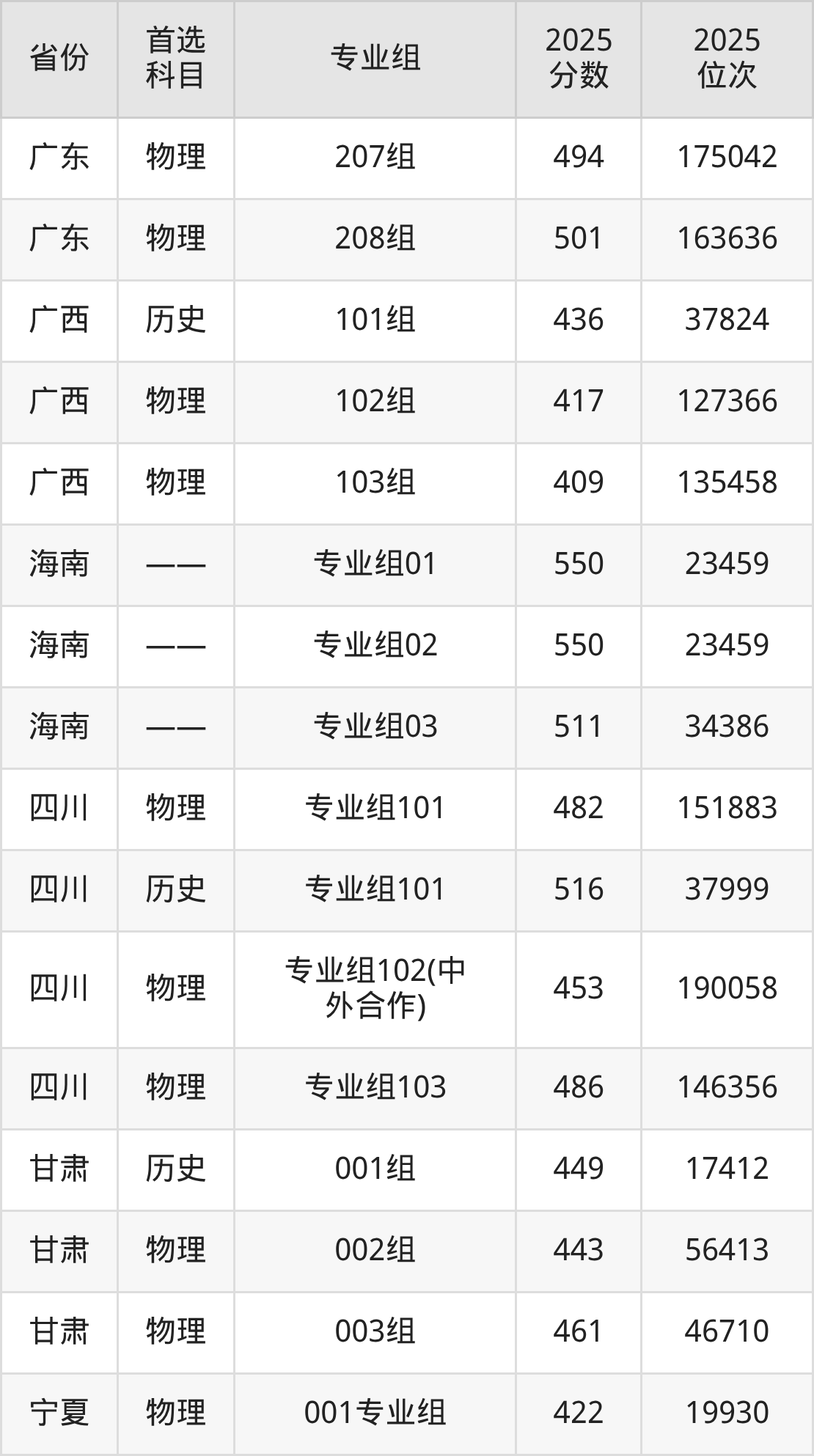 因为大部分地区目前只公布了院校(专业组)分数线,为了方便2026年考生参考,本文就整理出重庆财经学院在全国各省不同科类的最低分:
