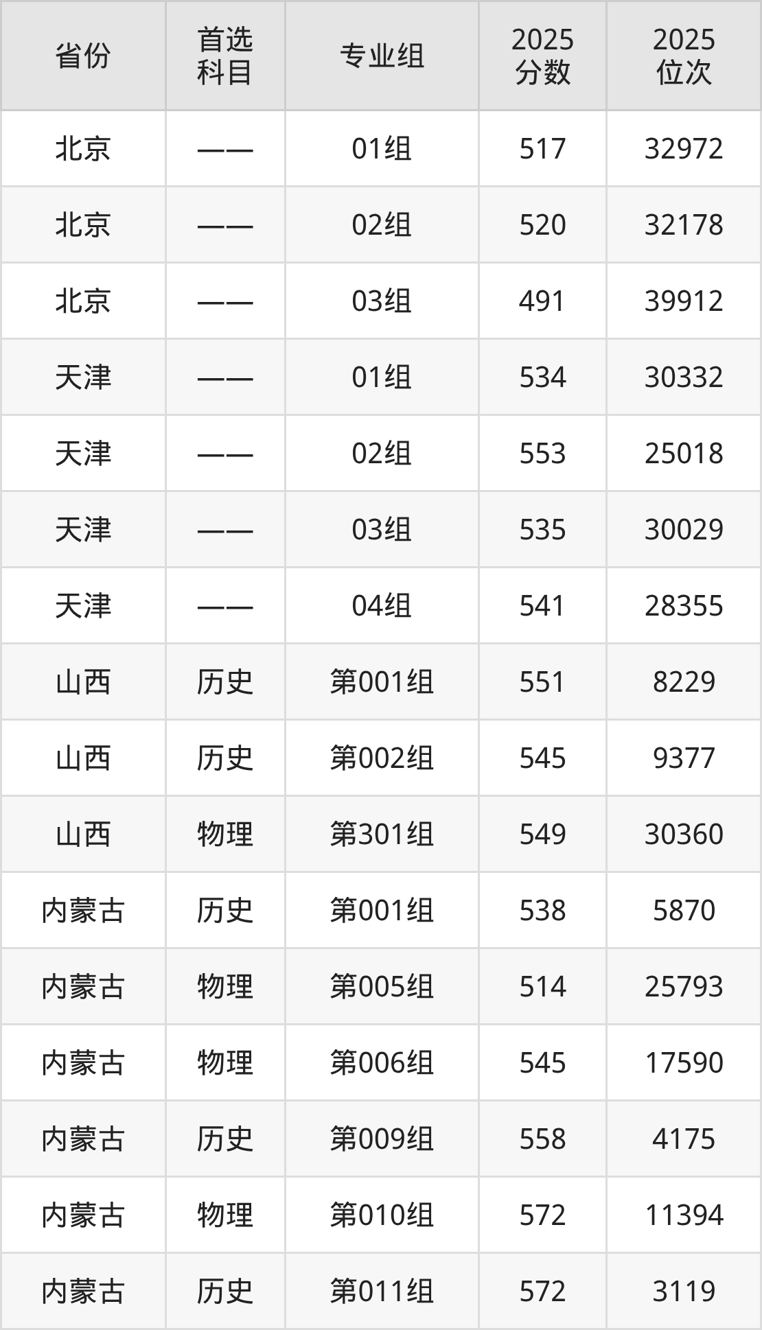 5.内蒙古:历史类538分、5870位,物理类514分、25793位