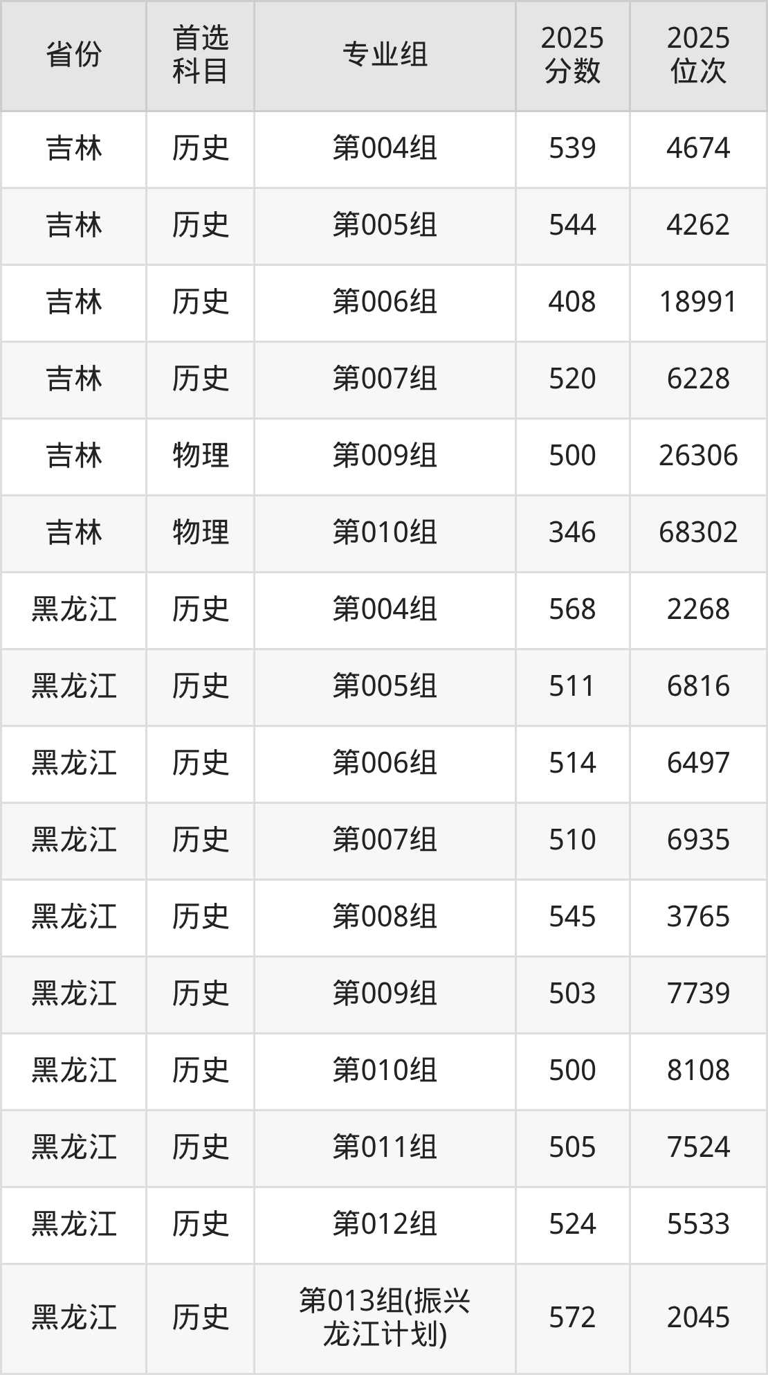 因为大部分地区目前只公布了院校(专业组)分数线,为了方便2026年考生参考,本文就整理出黑龙江大学在全国各省不同科类的最低分: