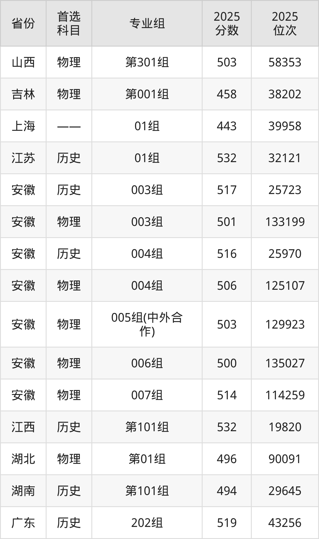 因为大部分地区目前只公布了院校(专业组)分数线,为了方便2026年考生参考,本文就整理出滁州学院在全国各省不同科类的最低分: