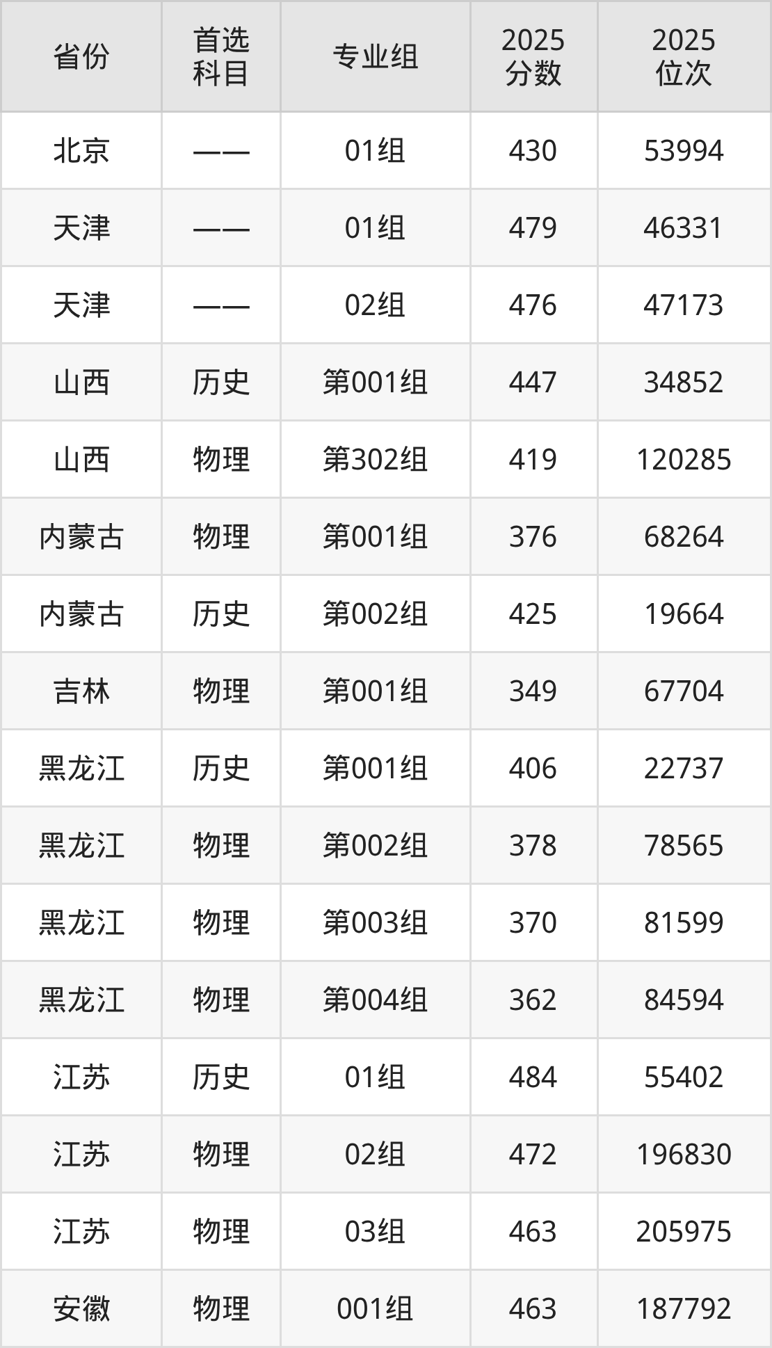 因为大部分地区目前只公布了院校(专业组)分数线,为了方便2026年考生参考,本文就整理出哈尔滨华德学院在全国各省不同科类的最低分:
