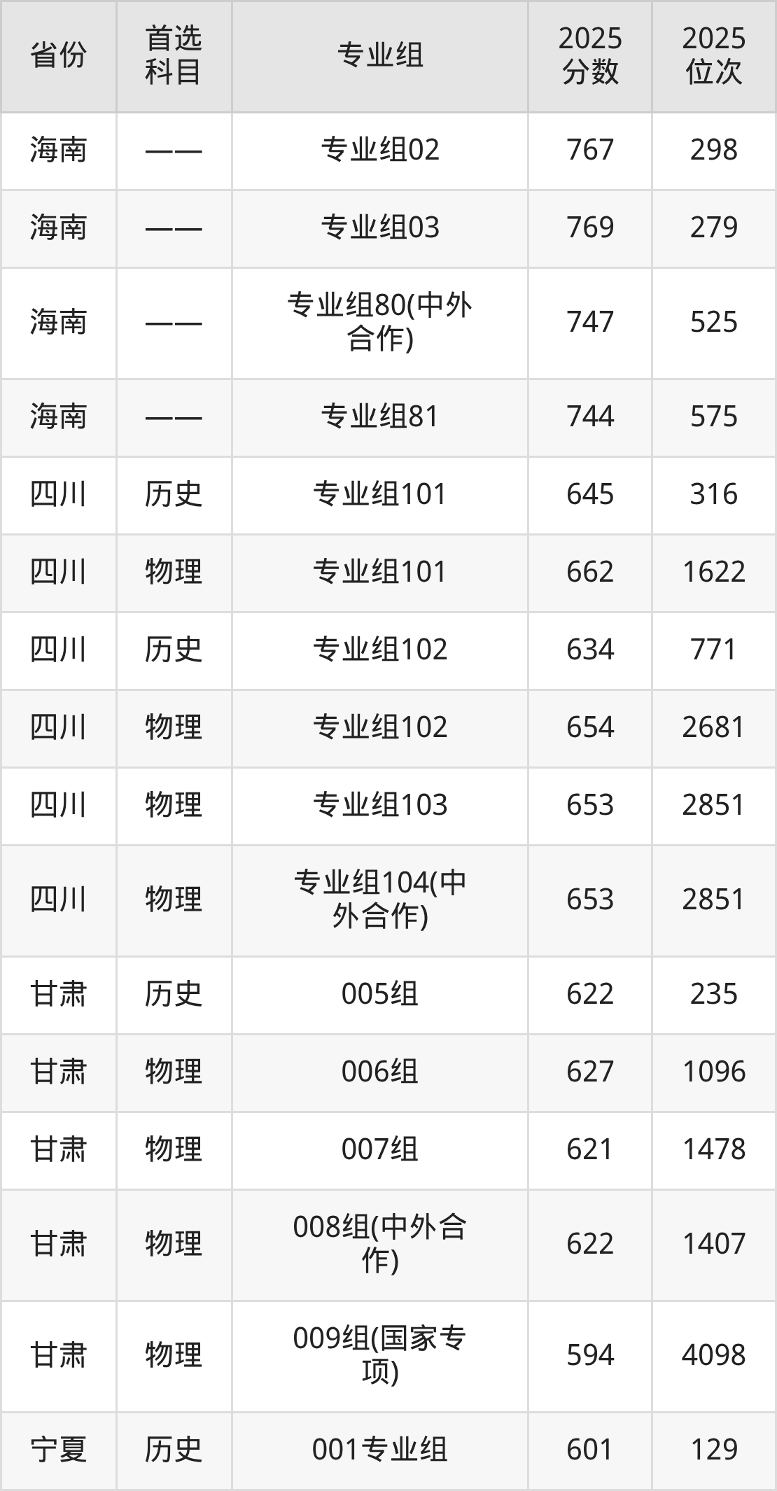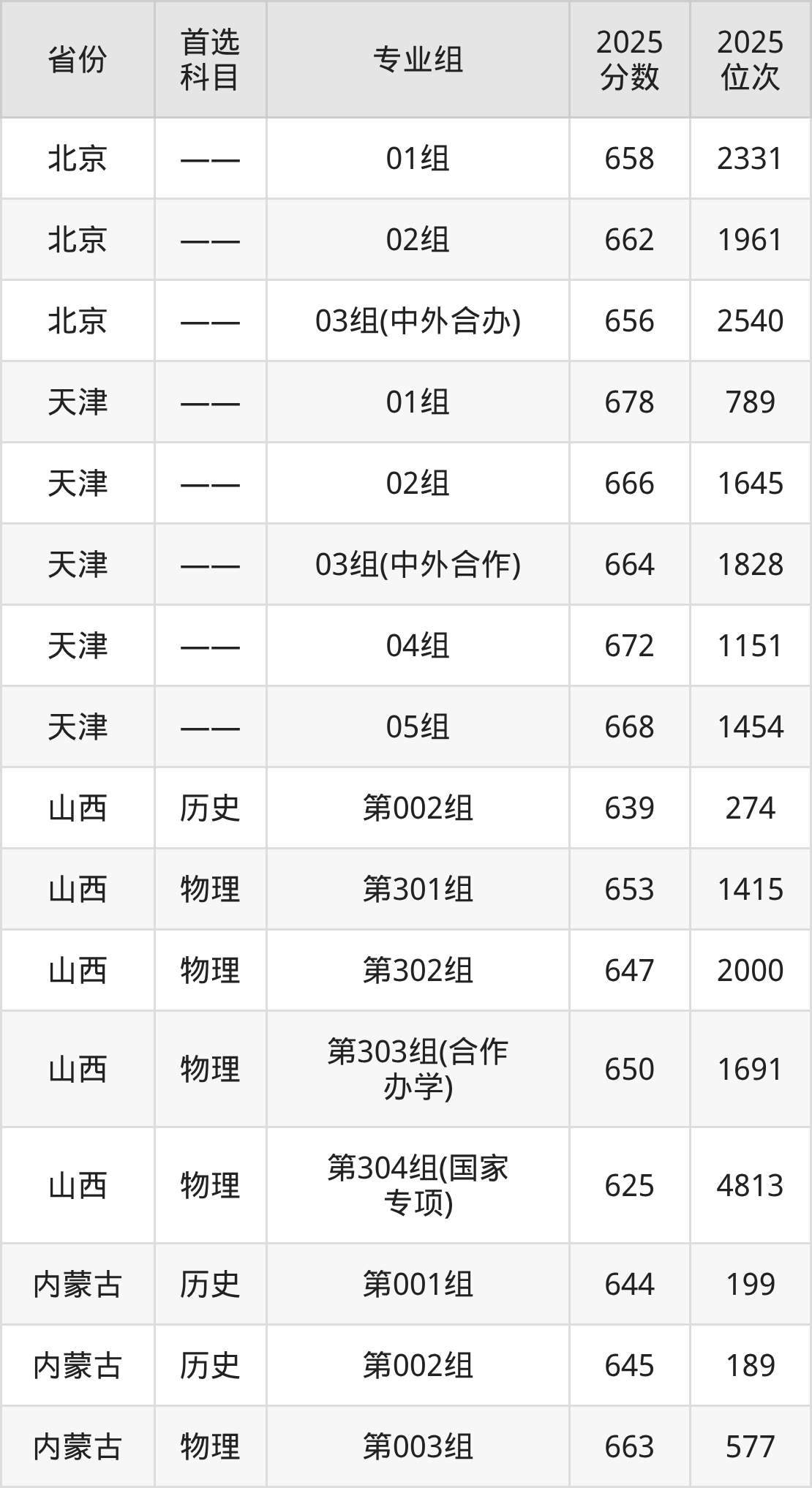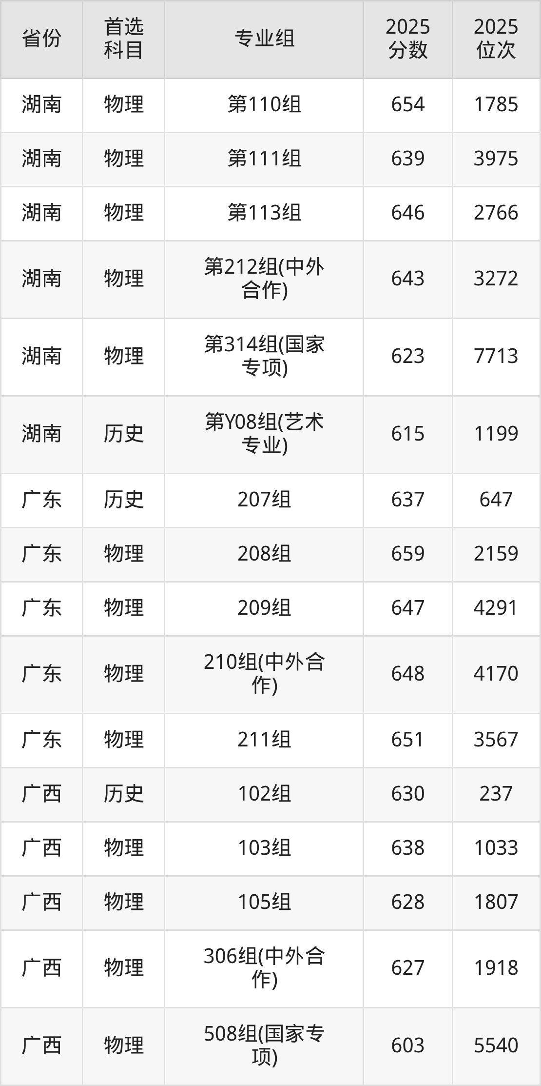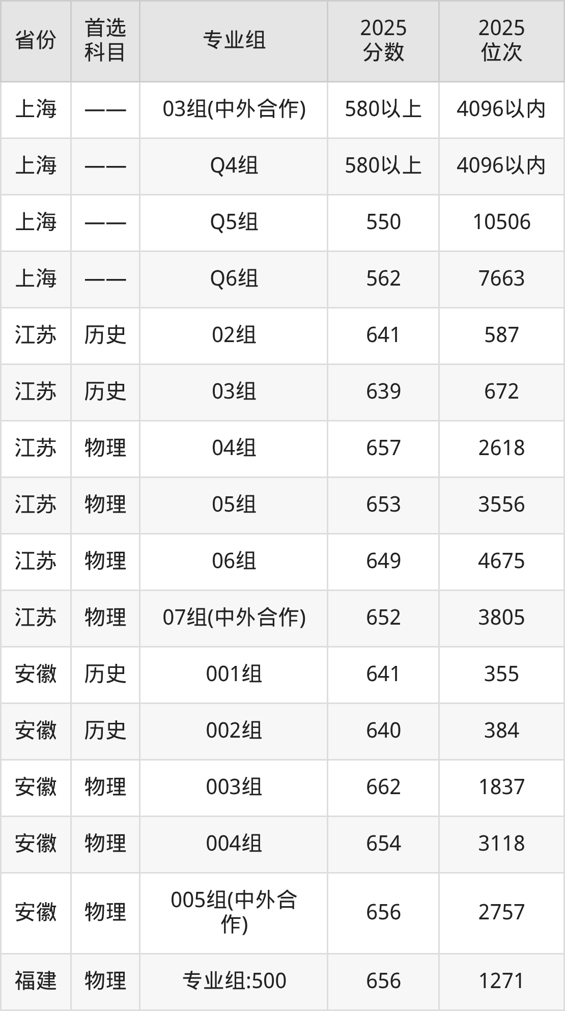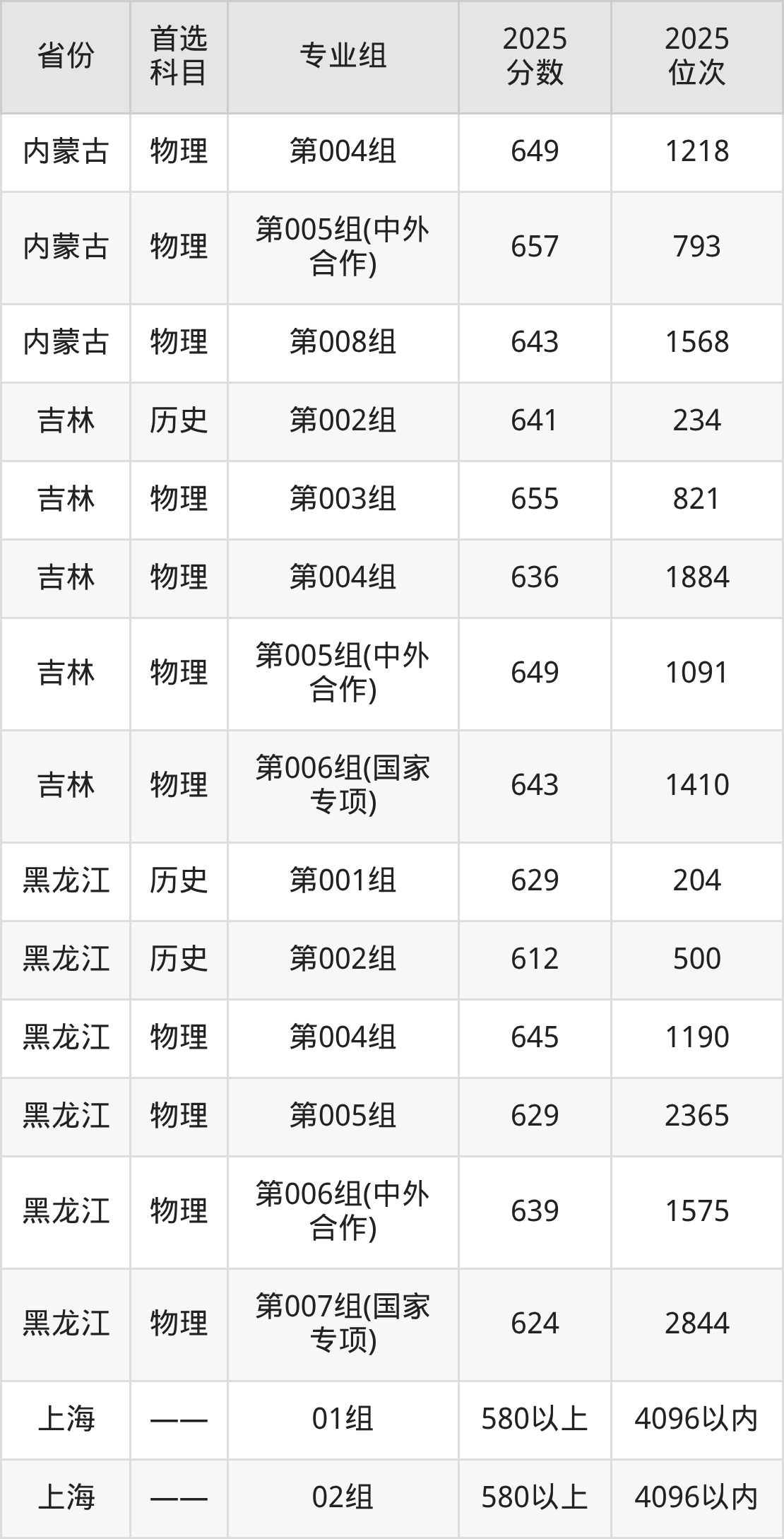 因为大部分地区目前只公布了院校(专业组)分数线,为了方便2026年考生参考,本文就整理出同济大学在全国各省不同科类的最低分: