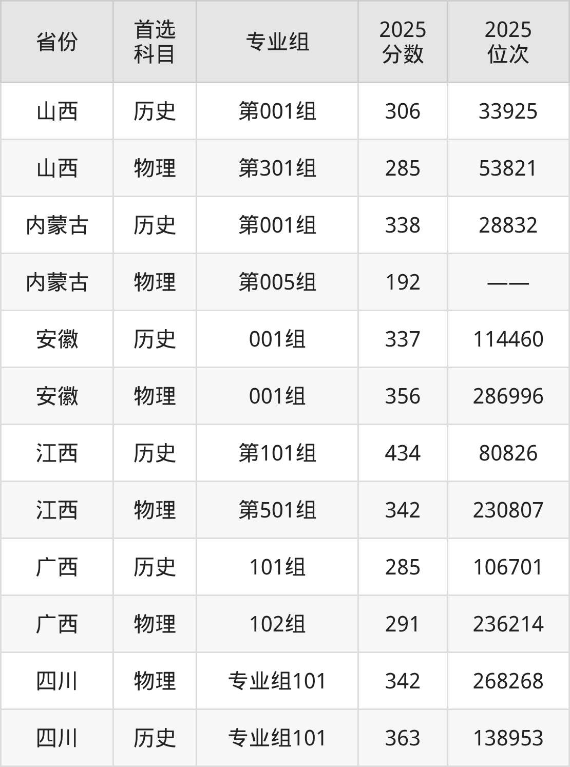 2.山西:历史类306分、33925位,物理类285分、53821位