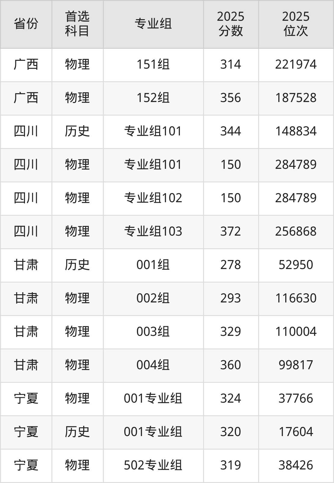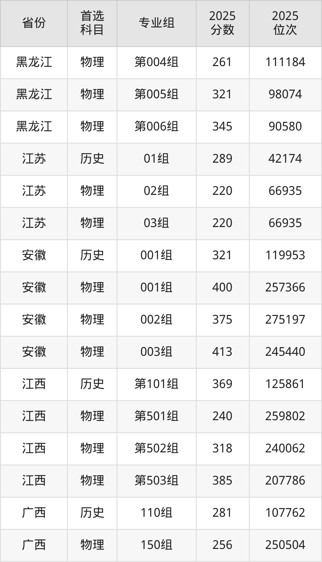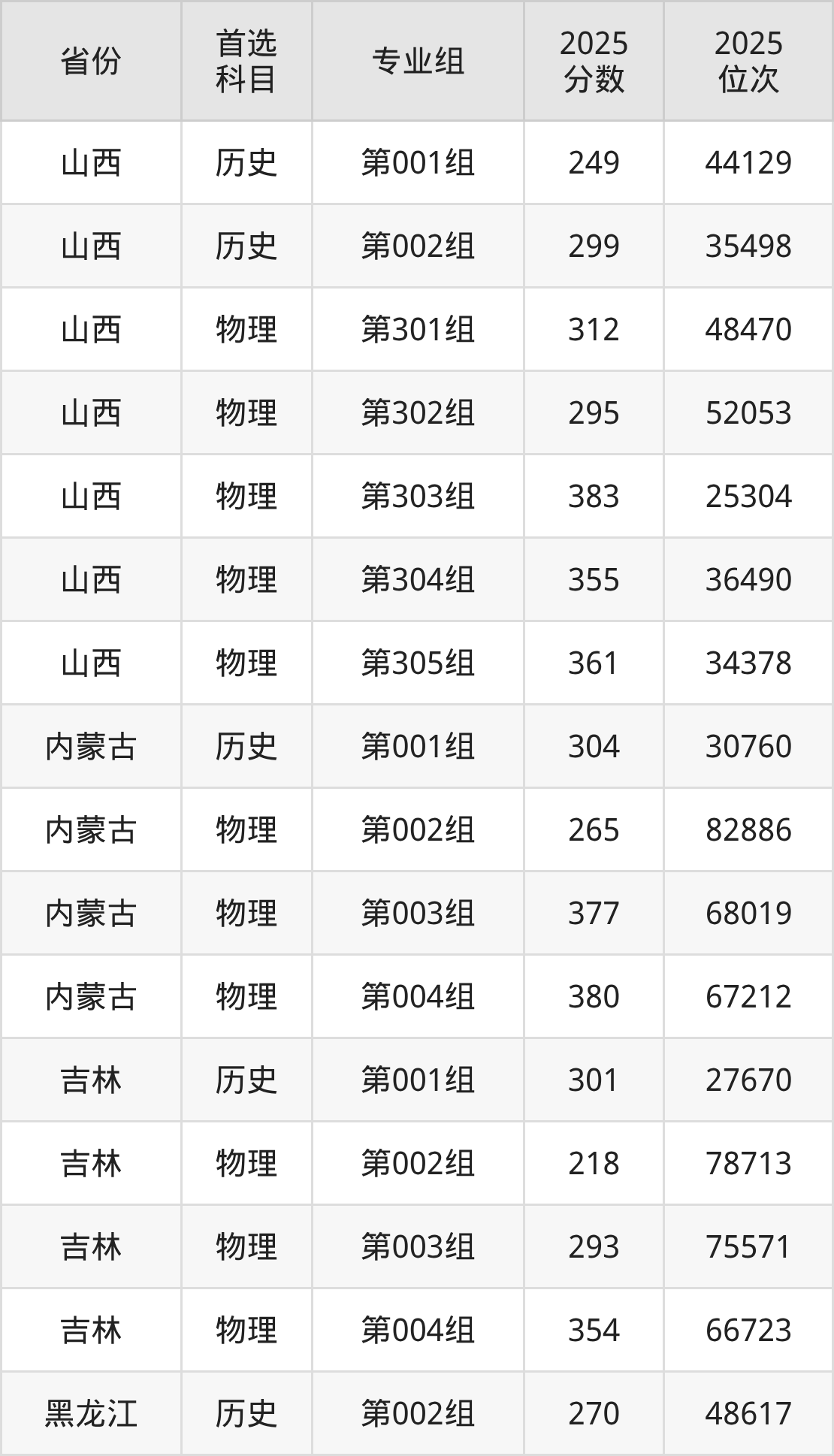 因为大部分地区目前只公布了院校(专业组)分数线,为了方便2026年考生参考,本文就整理出大兴安岭职业学院在全国各省不同科类的最低分:
