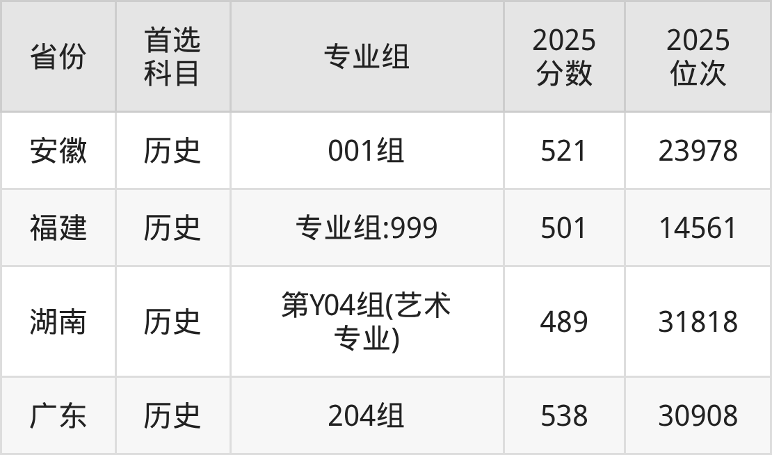 因为大部分地区目前只公布了院校(专业组)分数线,为了方便2026年考生参考,本文就整理出西安美术学院在全国各省不同科类的最低分: