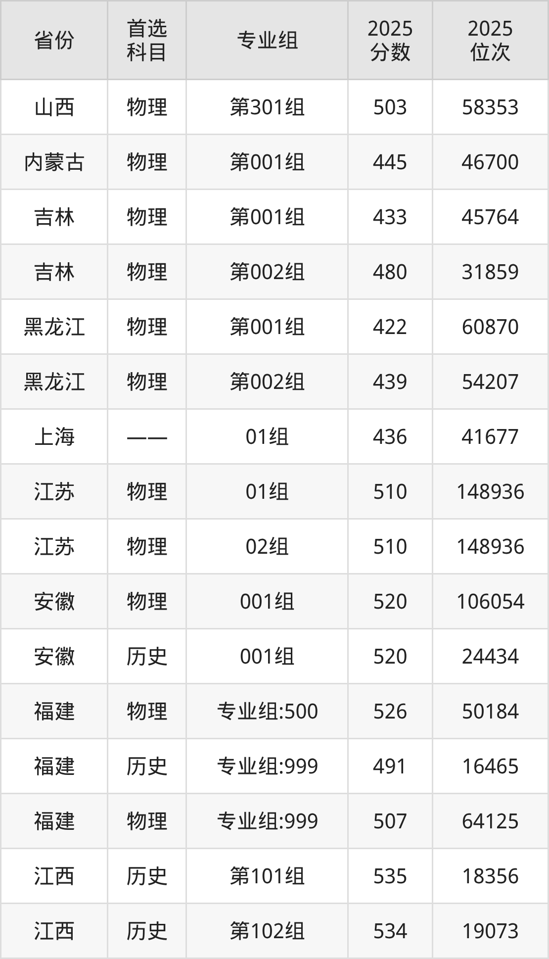因为大部分地区目前只公布了院校(专业组)分数线,为了方便2026年考生参考,本文就整理出衢州学院在全国各省不同科类的最低分: