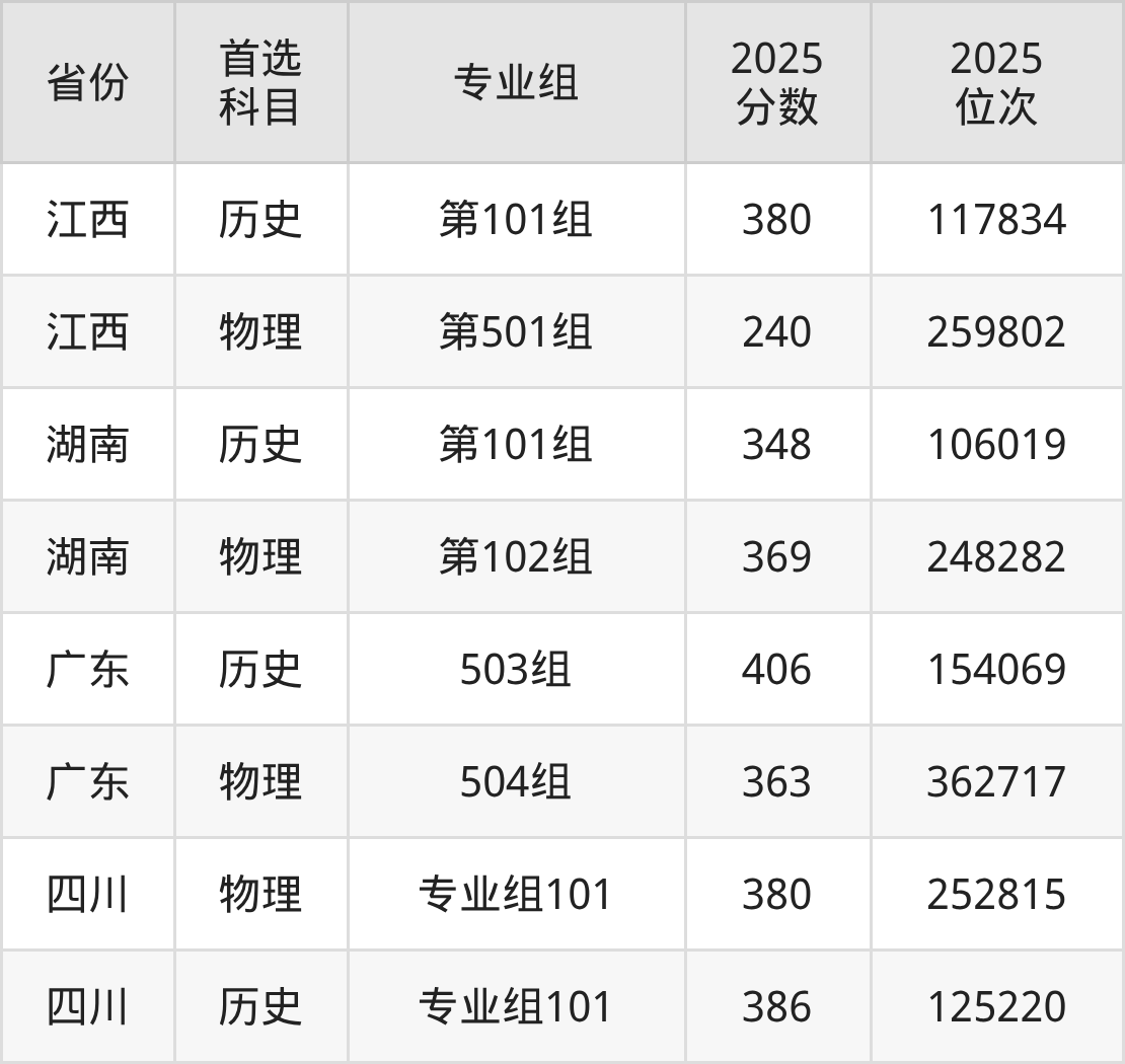 因为大部分地区目前只公布了院校(专业组)分数线,为了方便2026年考生参考,本文就整理出江西应用工程职业学院在全国各省不同科类的最低分: