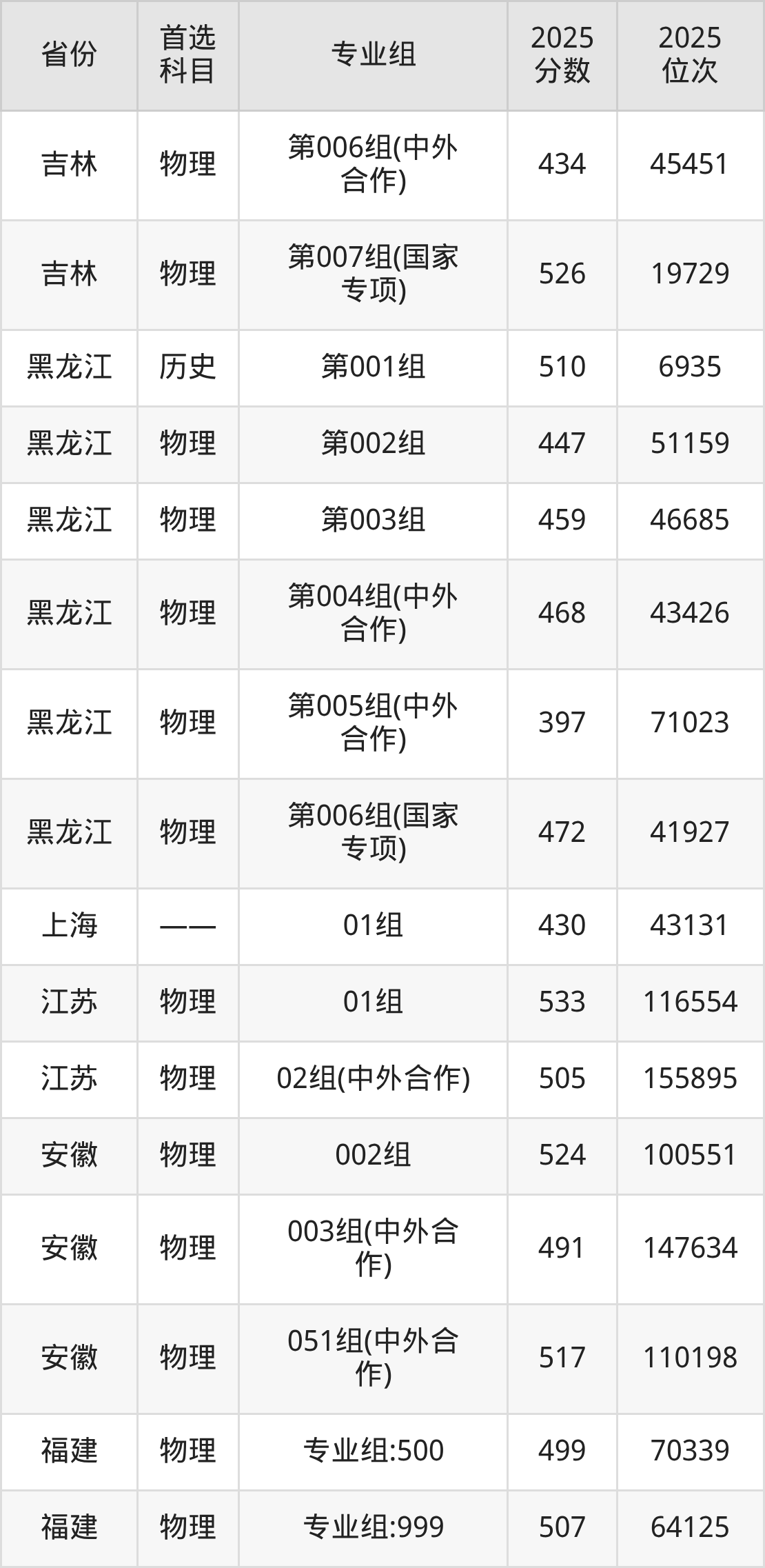 因为大部分地区目前只公布了院校(专业组)分数线,为了方便2026年考生参考,本文就整理出辽宁科技大学在全国各省不同科类的最低分: