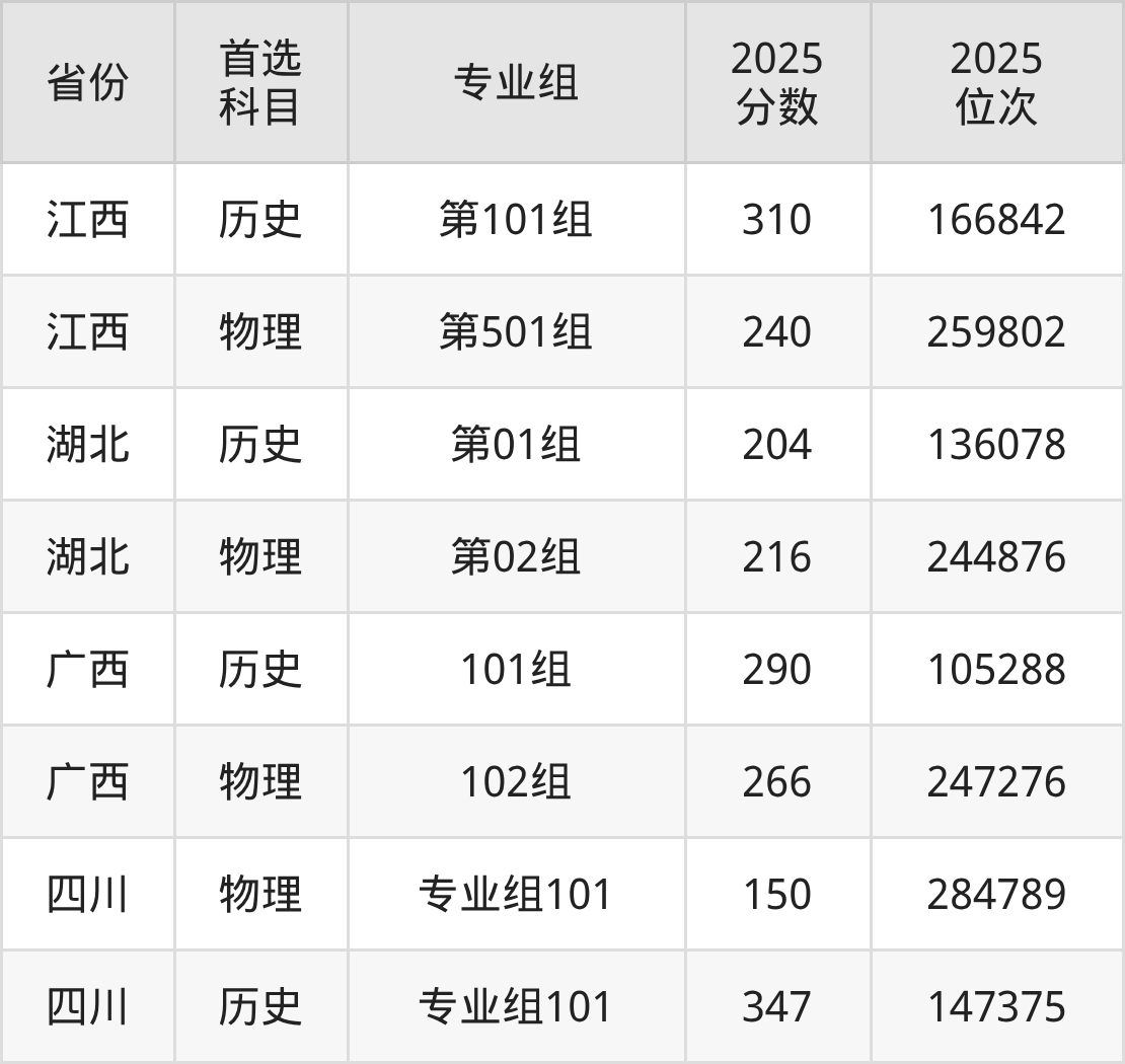 3.江西:历史类310分、166842位,物理类240分、259802位