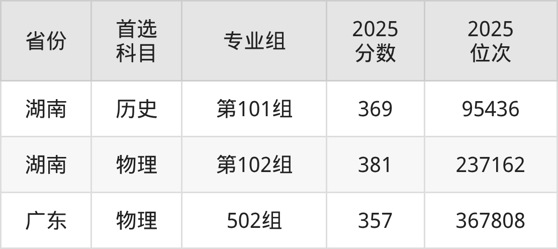 因为大部分地区目前只公布了院校(专业组)分数线,为了方便2026年考生参考,本文就整理出湖南电气职业技术学院在全国各省不同科类的最低分: