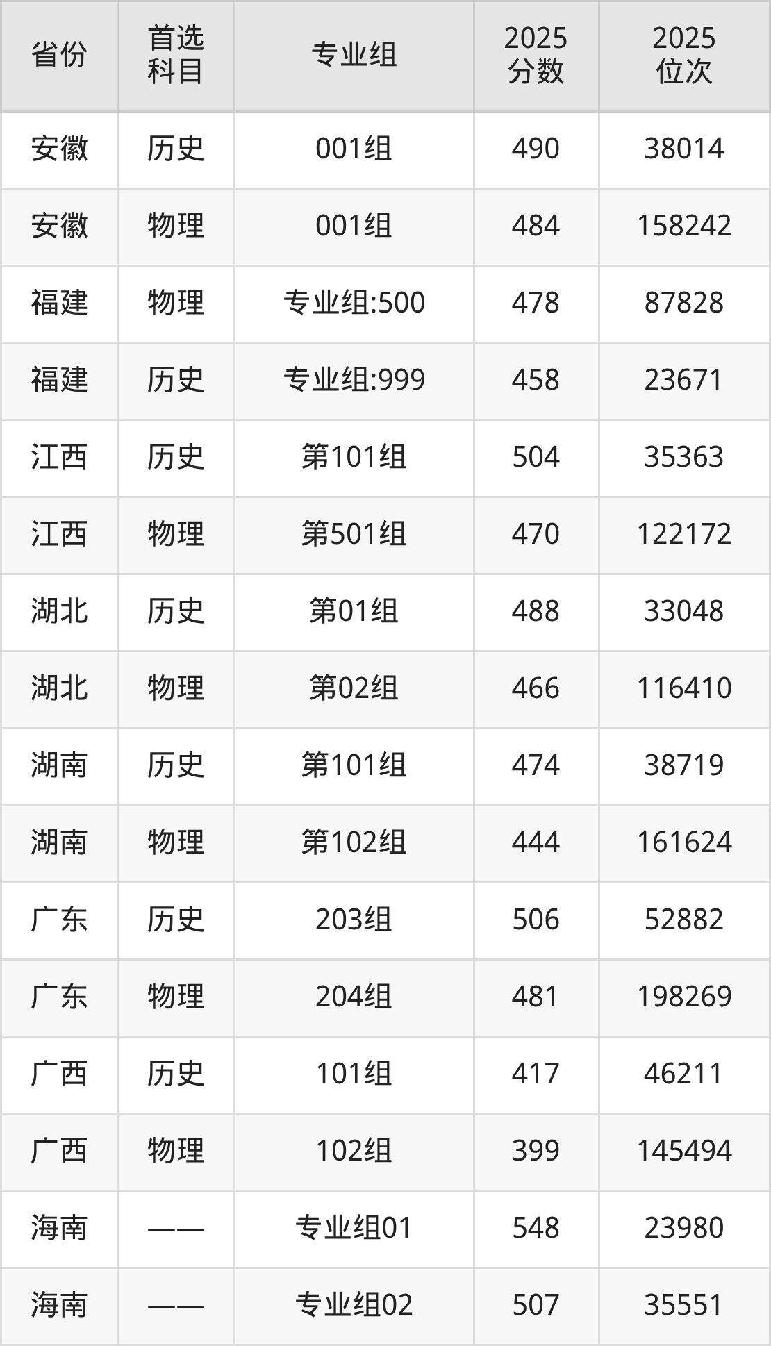因为大部分地区目前只公布了院校(专业组)分数线,为了方便2026年考生参考,本文就整理出山西晋中理工学院在全国各省不同科类的最低分: