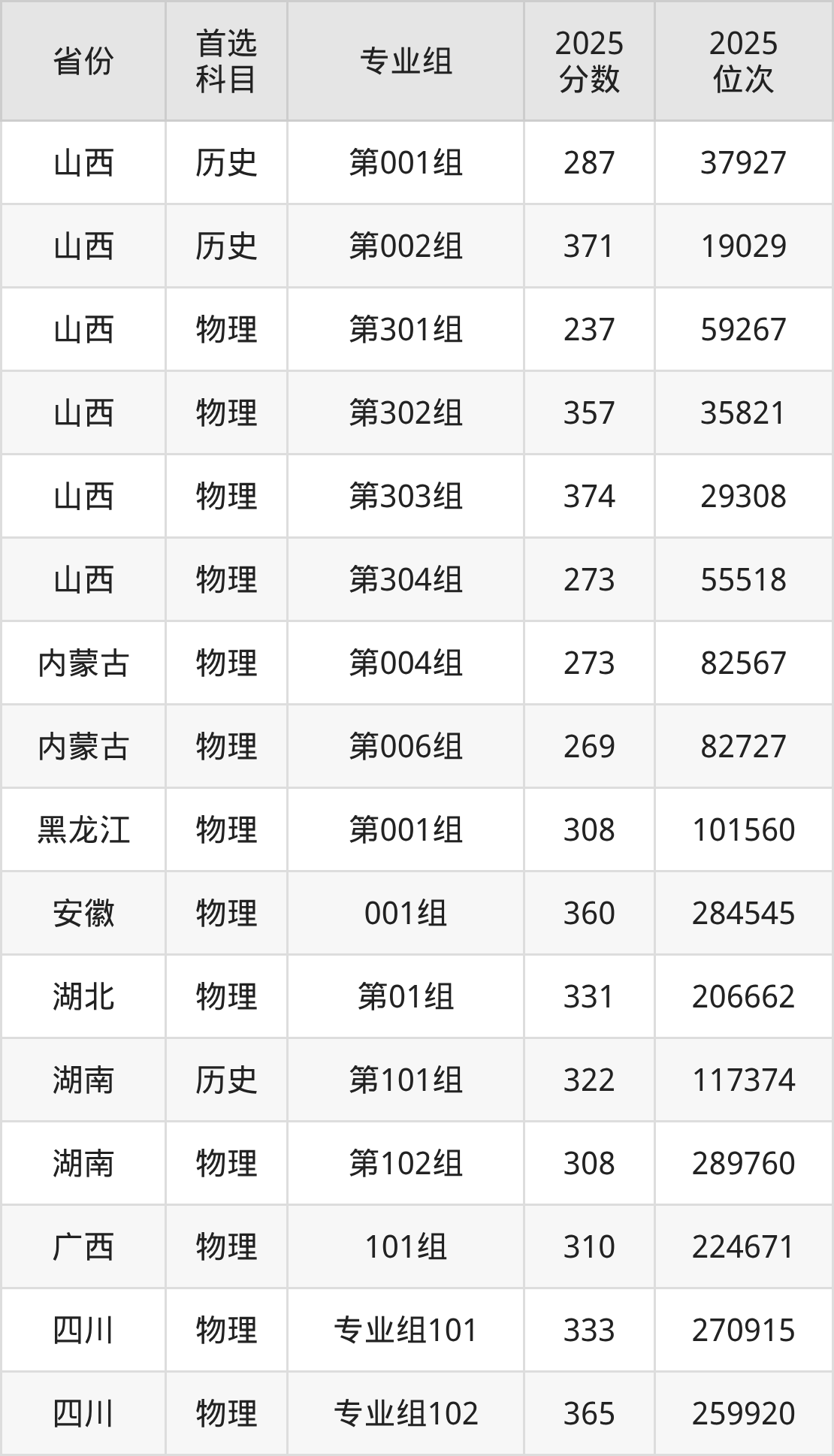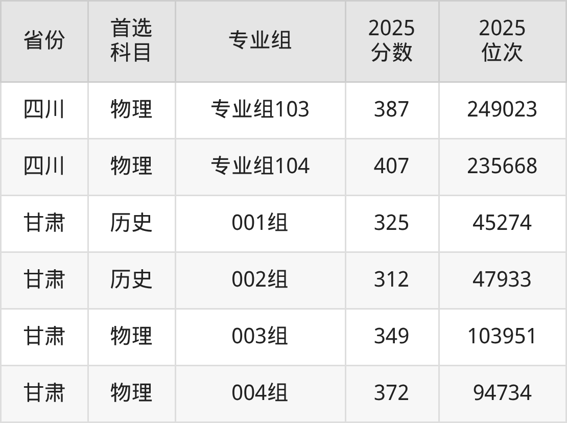 因为大部分地区目前只公布了院校(专业组)分数线,为了方便2026年考生参考,本文就整理出新疆轻工职业技术学院在全国各省不同科类的最低分: