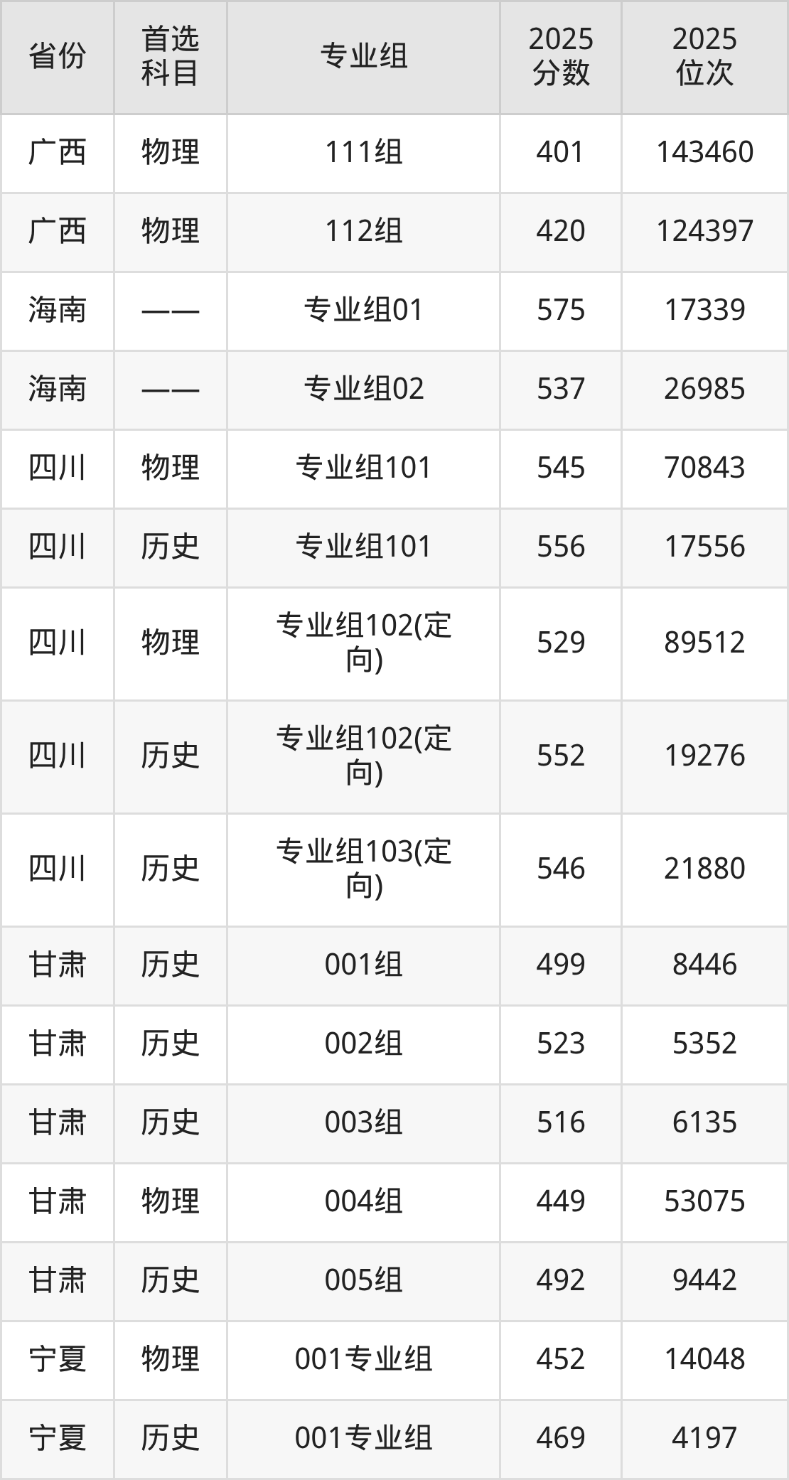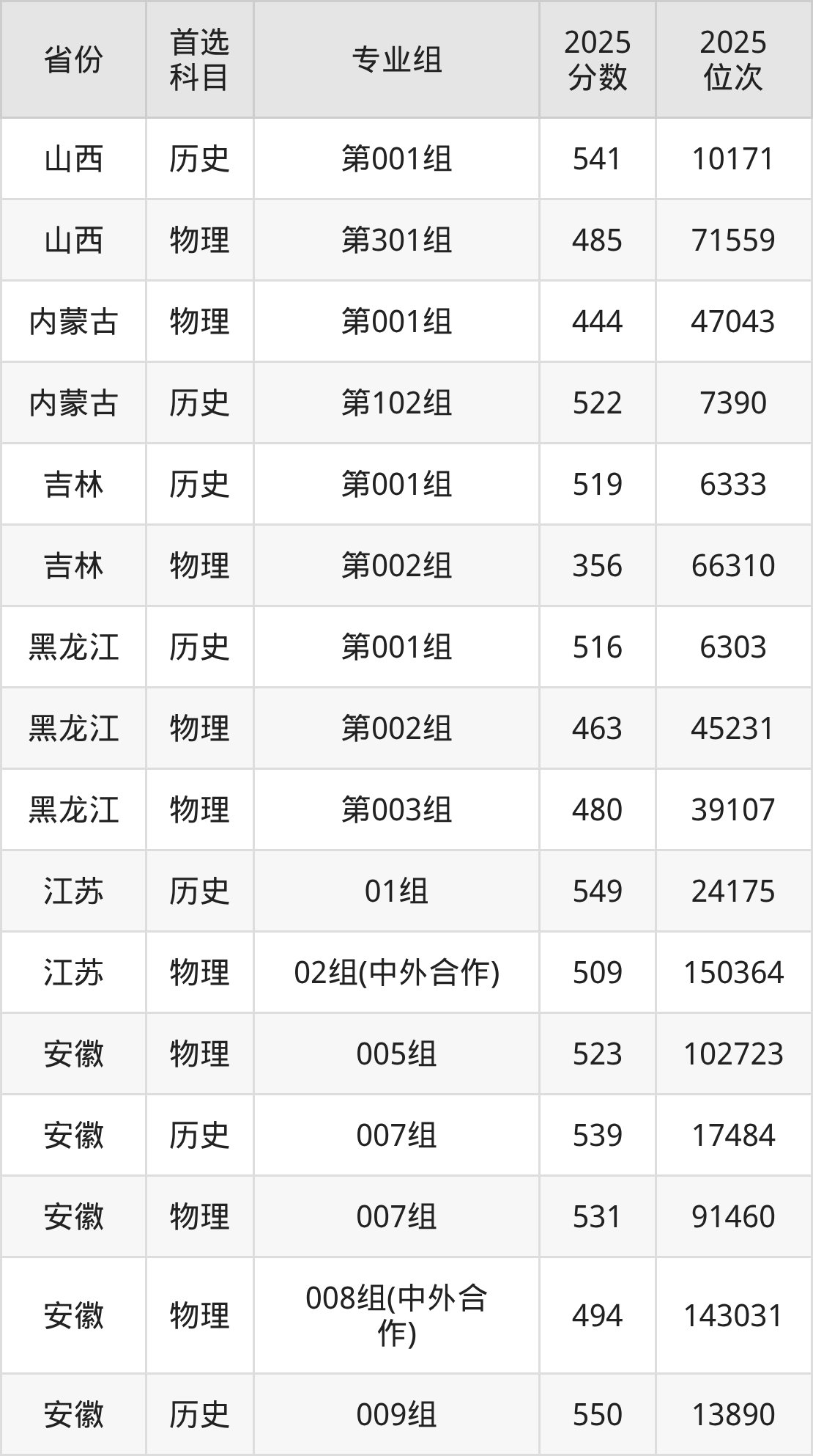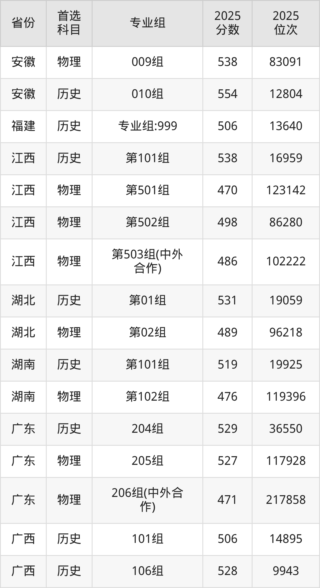 因为大部分地区目前只公布了院校(专业组)分数线,为了方便2026年考生参考,本文就整理出安庆师范大学在全国各省不同科类的最低分: