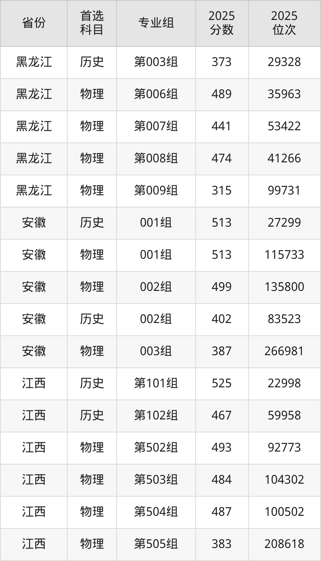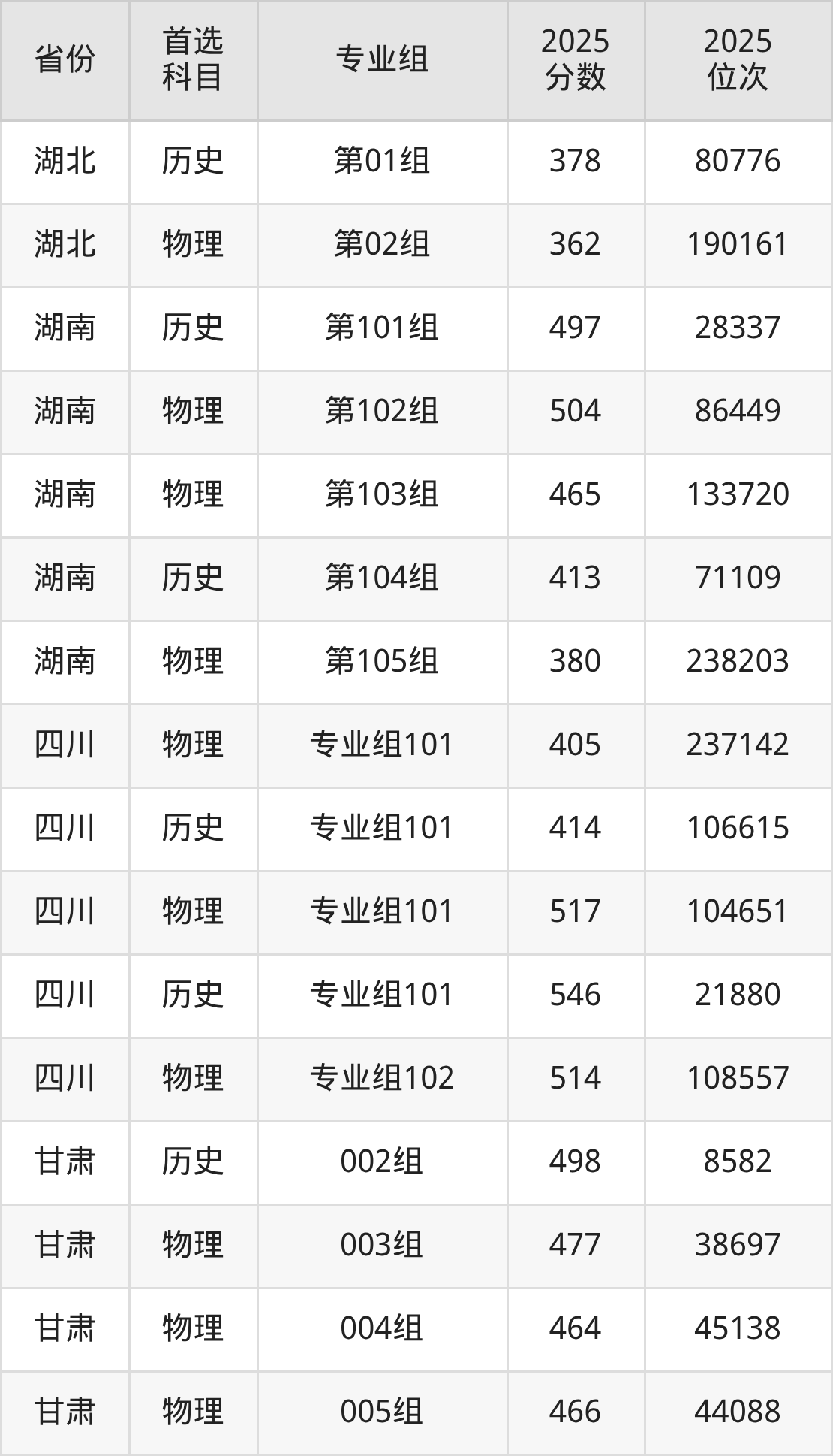 因为大部分地区目前只公布了院校(专业组)分数线,为了方便2026年考生参考,本文就整理出新疆警察学院在全国各省不同科类的最低分: