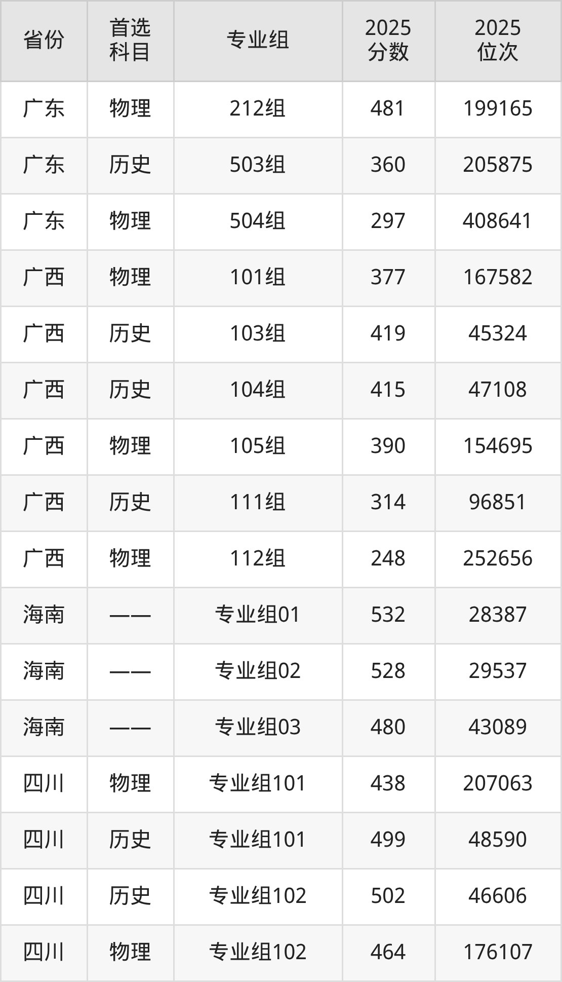 因为大部分地区目前只公布了院校(专业组)分数线,为了方便2026年考生参考,本文就整理出昆明城市学院在全国各省不同科类的最低分: