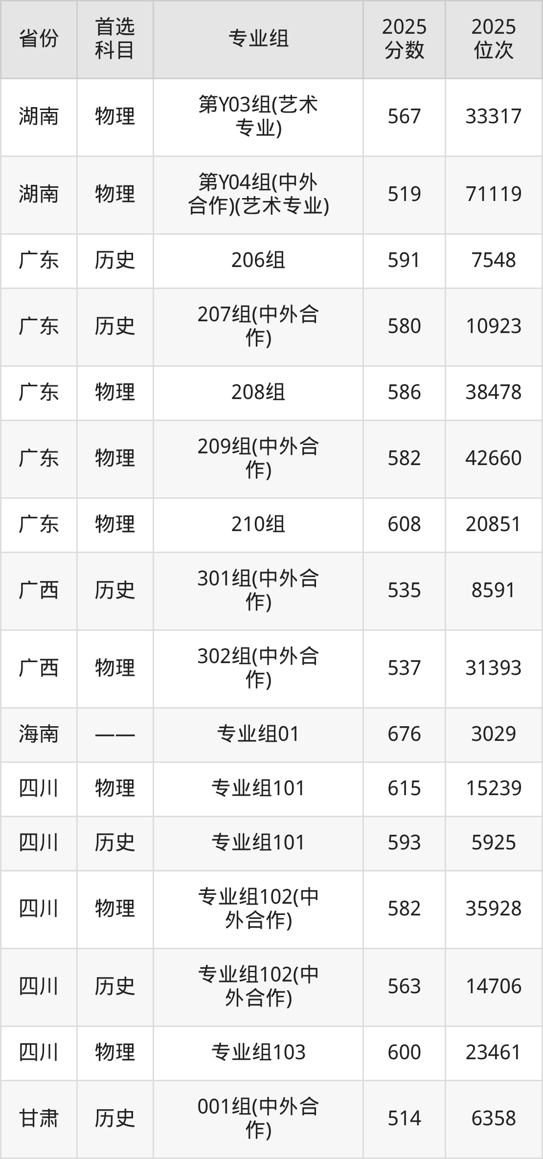因为大部分地区目前只公布了院校(专业组)分数线,为了方便2026年考生参考,本文就整理出中央美术学院在全国各省不同科类的最低分: