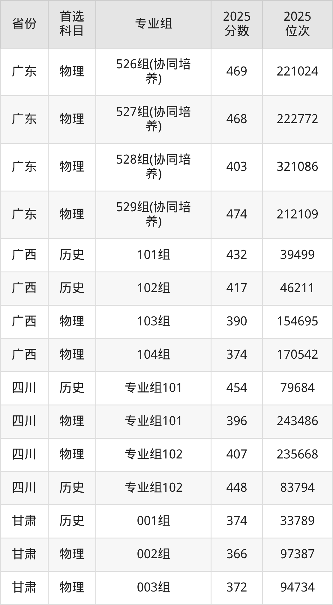 因为大部分地区目前只公布了院校(专业组)分数线,为了方便2026年考生参考,本文就整理出广东食品药品职业学院在全国各省不同科类的最低分: