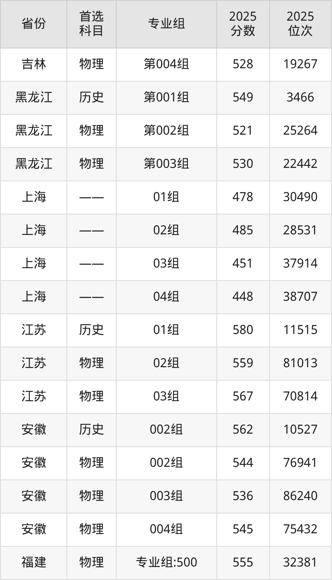 因为大部分地区目前只公布了院校(专业组)分数线,为了方便2026年考生参考,本文就整理出上海立信会计金融学院在全国各省不同科类的最低分: