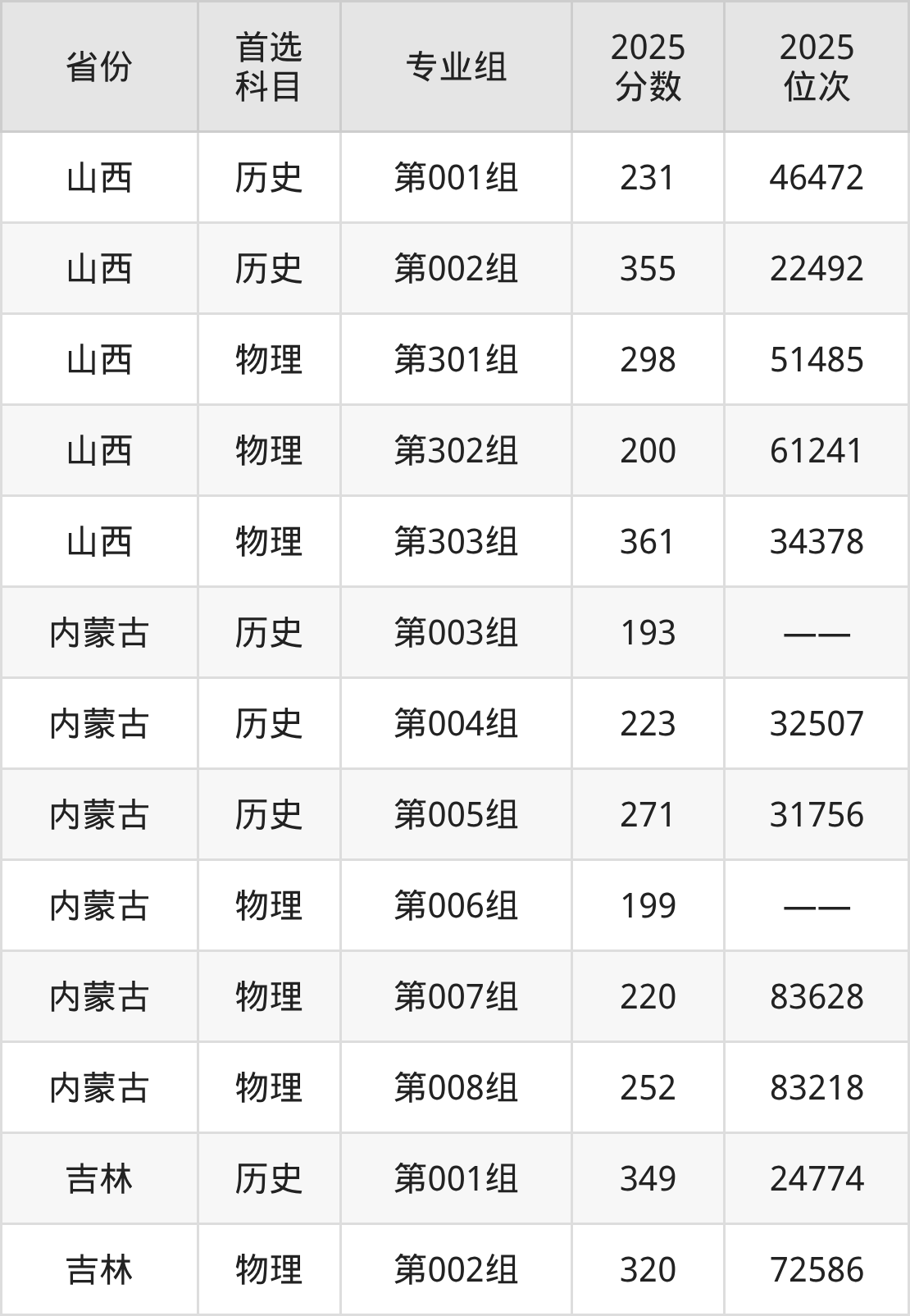 因为大部分地区目前只公布了院校(专业组)分数线,为了方便2026年考生参考,本文就整理出赤峰应用技术职业学院在全国各省不同科类的最低分: