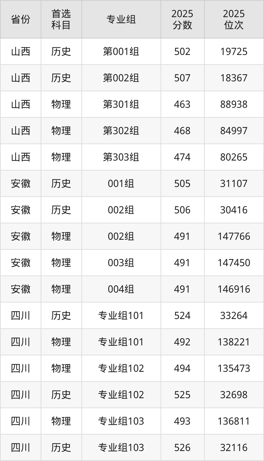 因为大部分地区目前只公布了院校(专业组)分数线,为了方便2026年考生参考,本文就整理出亳州学院在全国各省不同科类的最低分:
