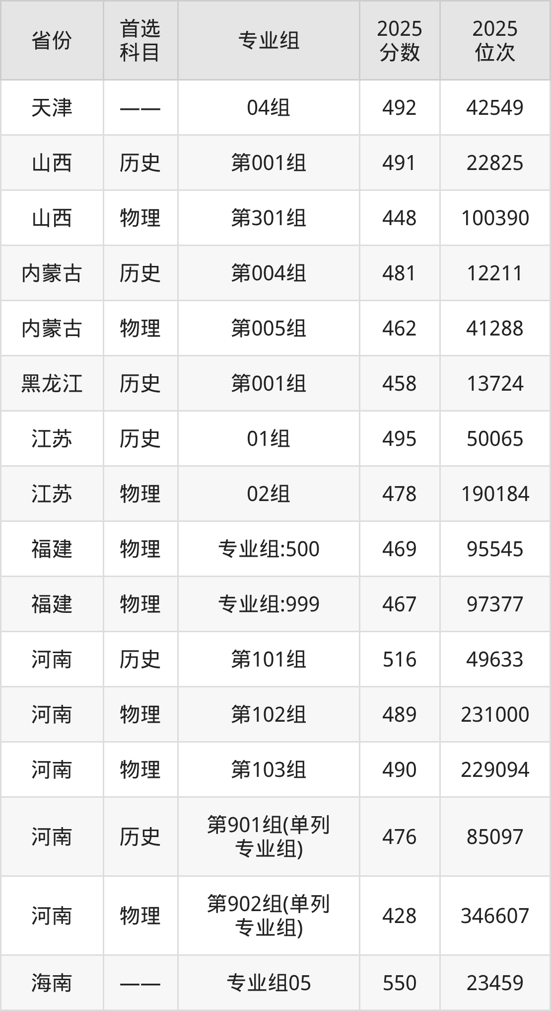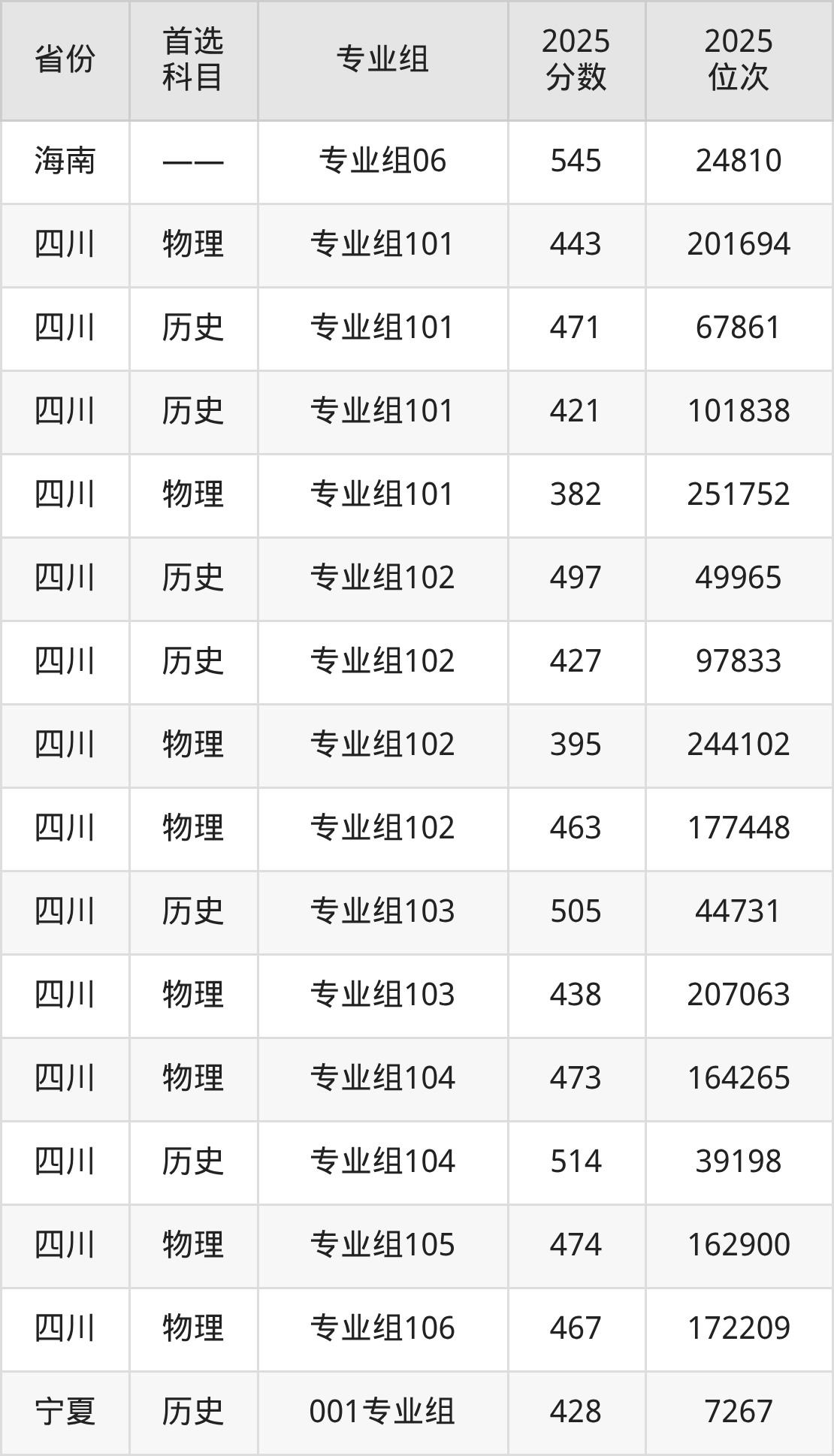 因为大部分地区目前只公布了院校(专业组)分数线,为了方便2026年考生参考,本文就整理出成都文理学院在全国各省不同科类的最低分: