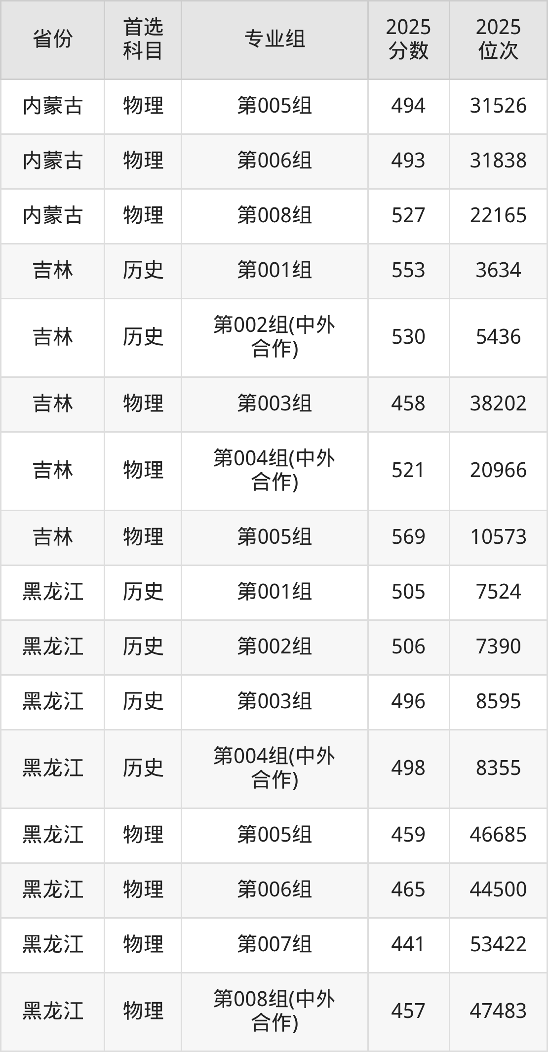5.内蒙古:历史类536分、6045位,物理类493分、31838位
