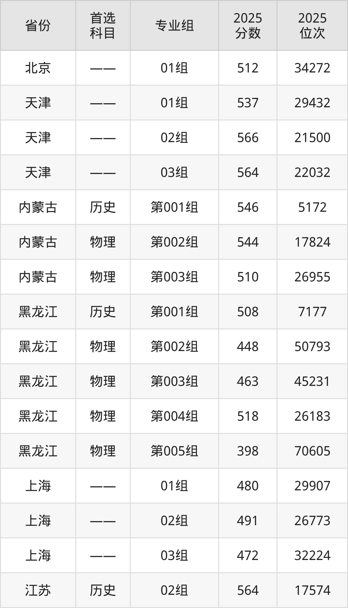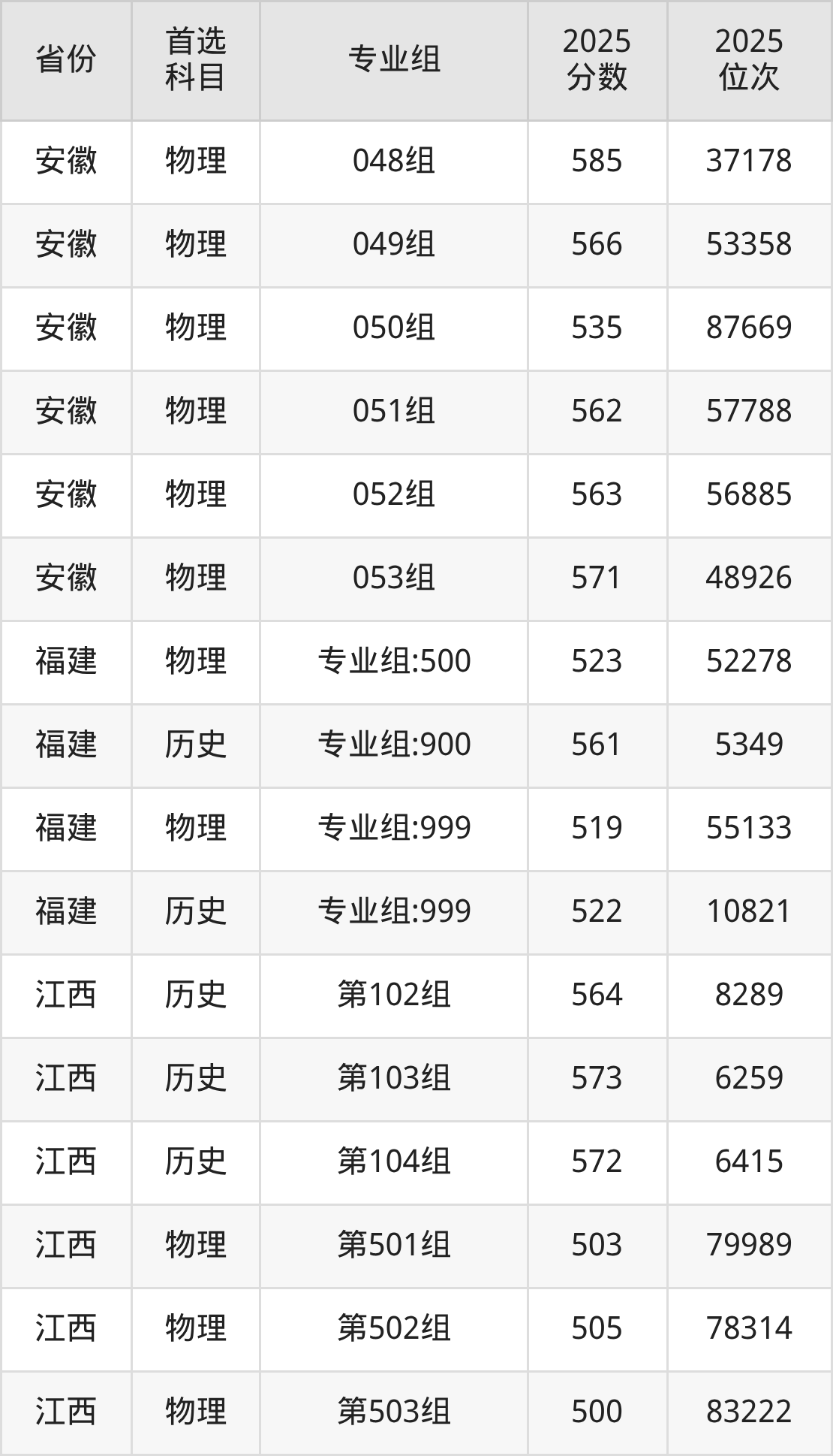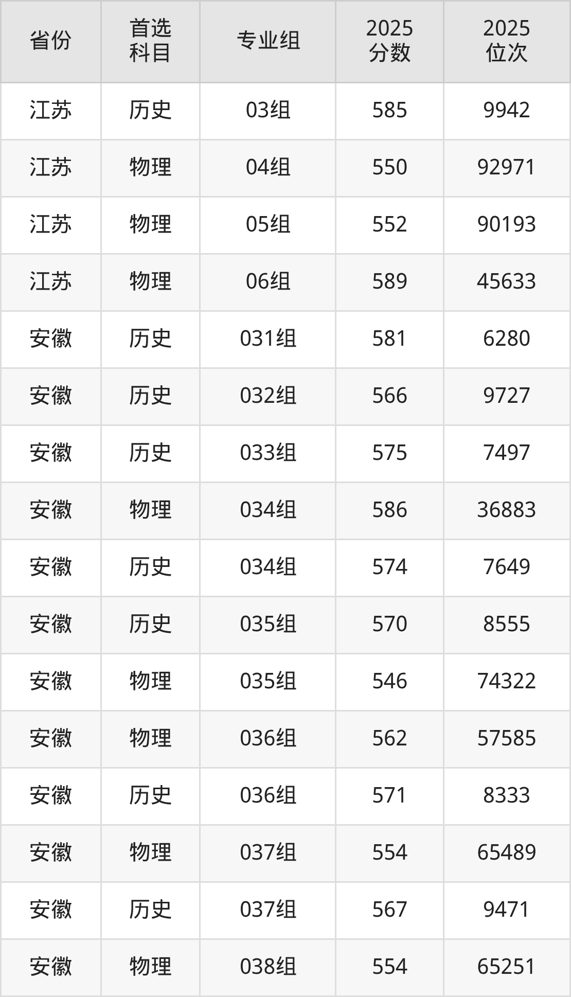 因为大部分地区目前只公布了院校(专业组)分数线,为了方便2026年考生参考,本文就整理出安徽师范大学在全国各省不同科类的最低分: