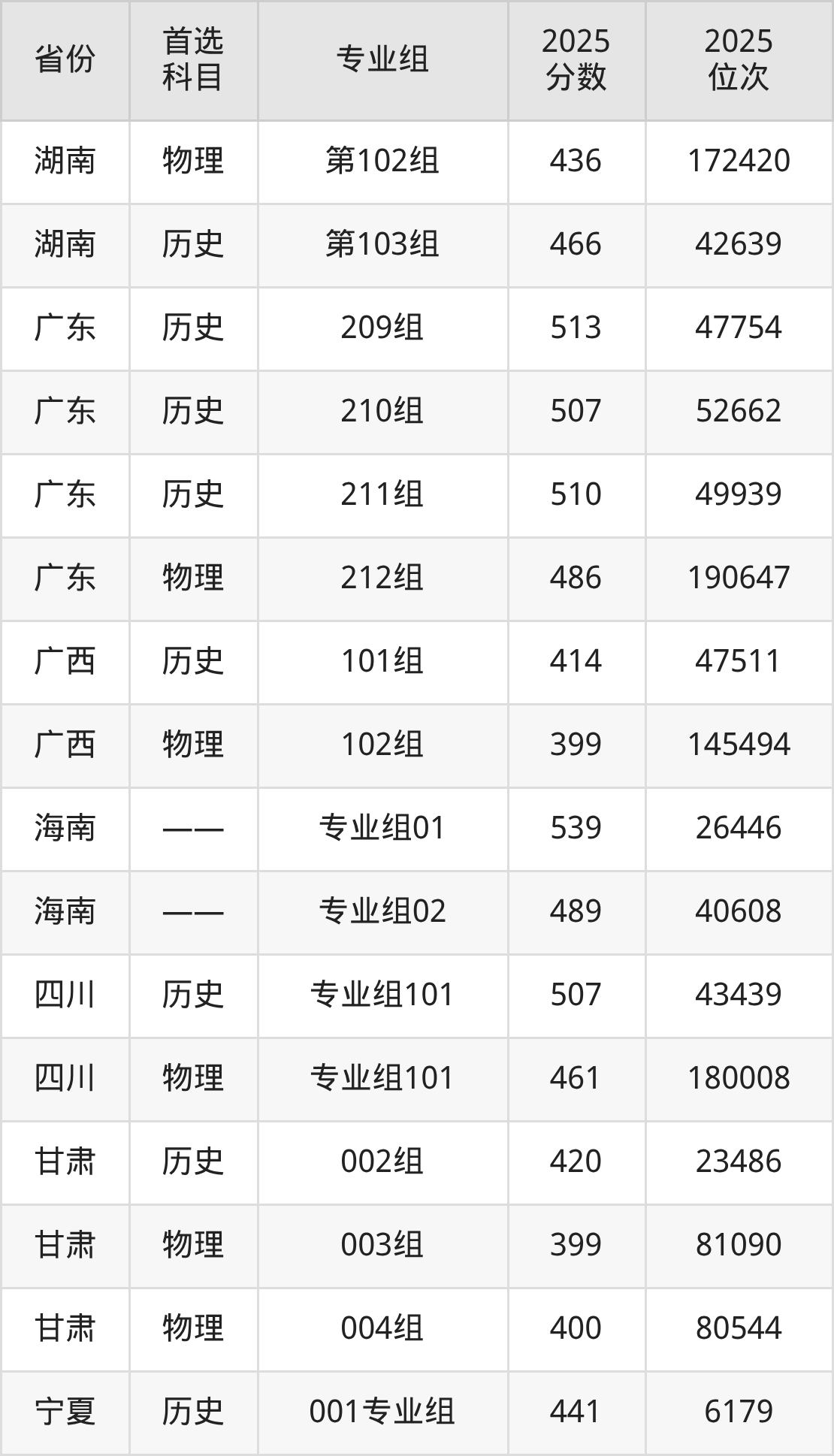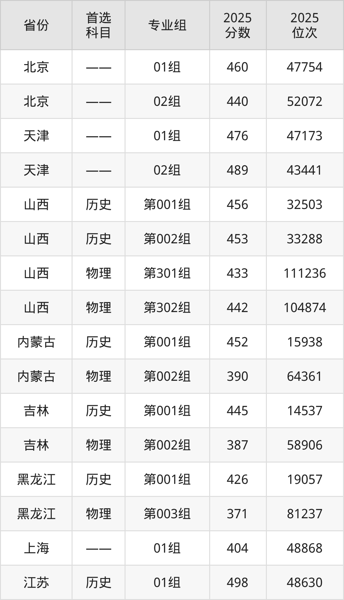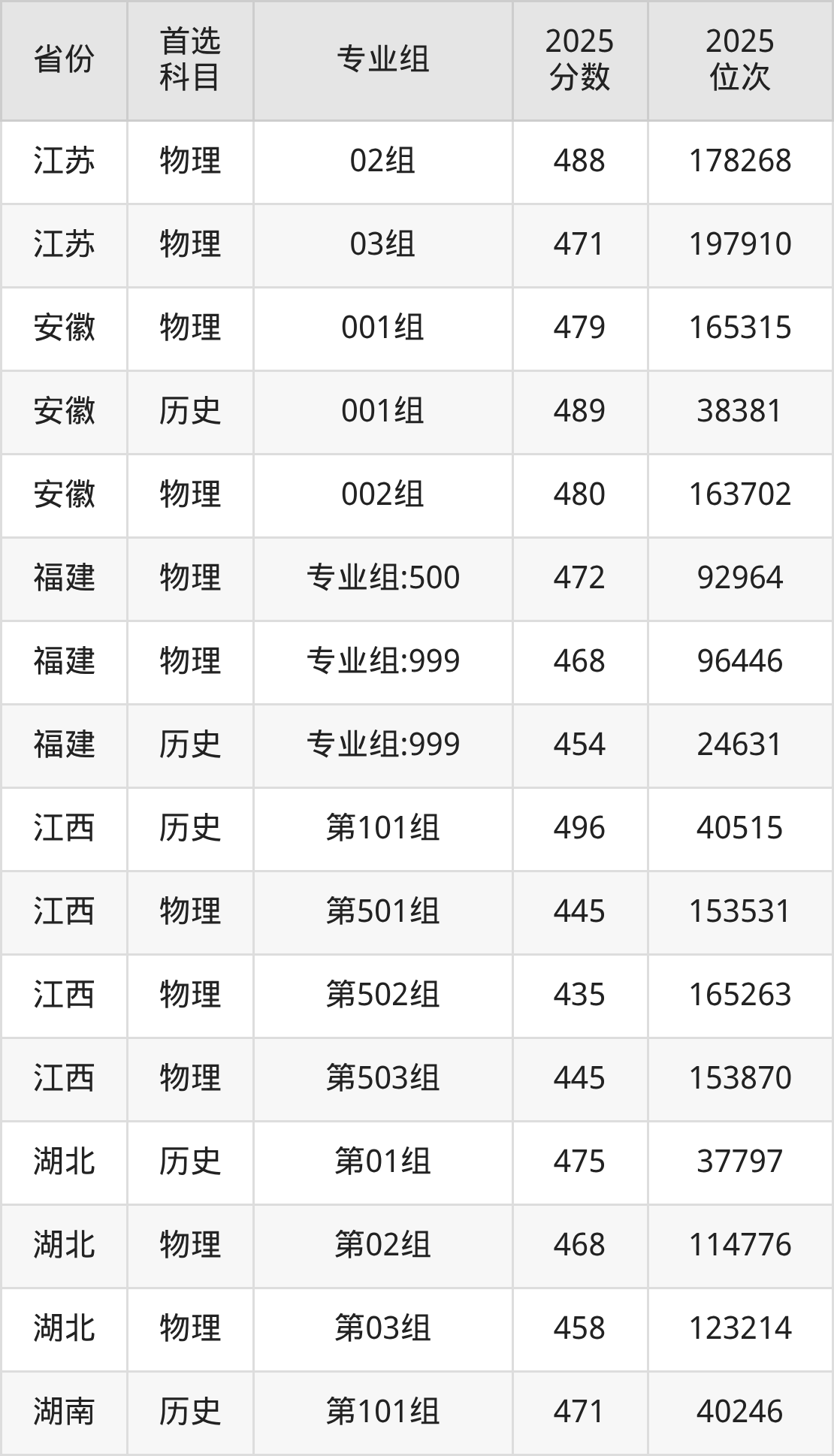 因为大部分地区目前只公布了院校(专业组)分数线,为了方便2026年考生参考,本文就整理出南昌交通学院在全国各省不同科类的最低分: