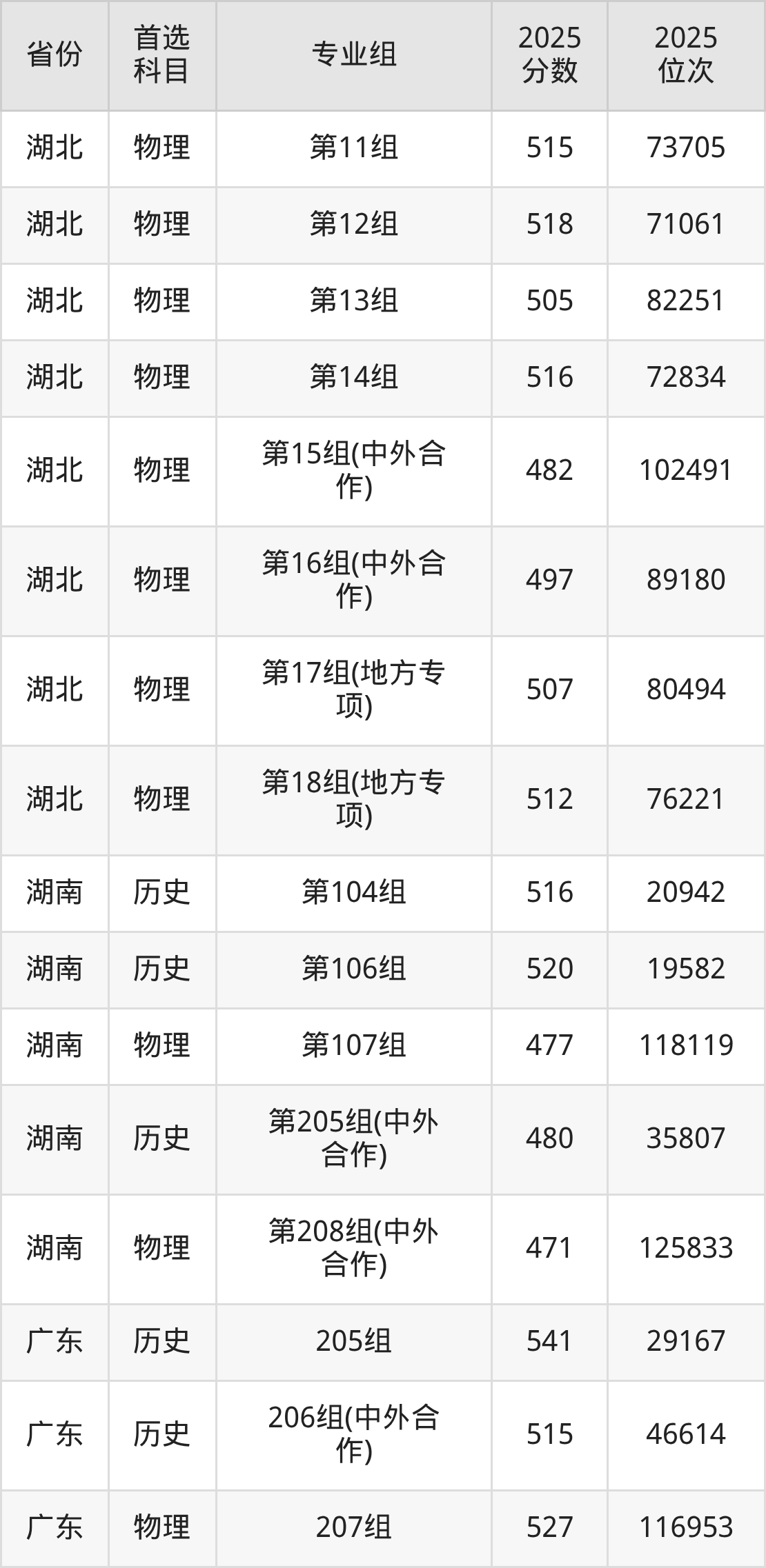 因为大部分地区目前只公布了院校(专业组)分数线,为了方便2026年考生参考,本文就整理出湖北第二师范学院在全国各省不同科类的最低分: