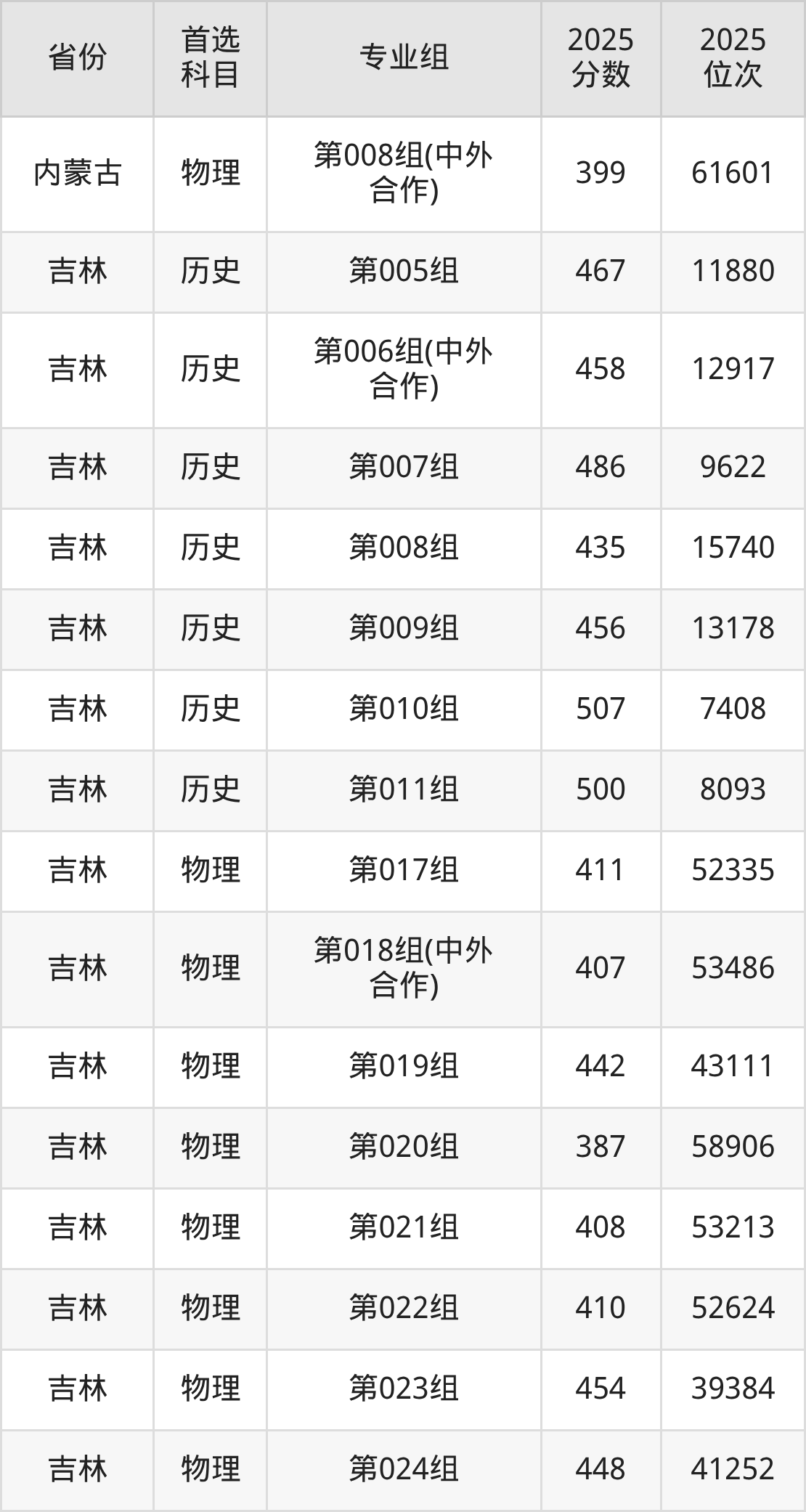 因为大部分地区目前只公布了院校(专业组)分数线,为了方便2026年考生参考,本文就整理出白城师范学院在全国各省不同科类的最低分: