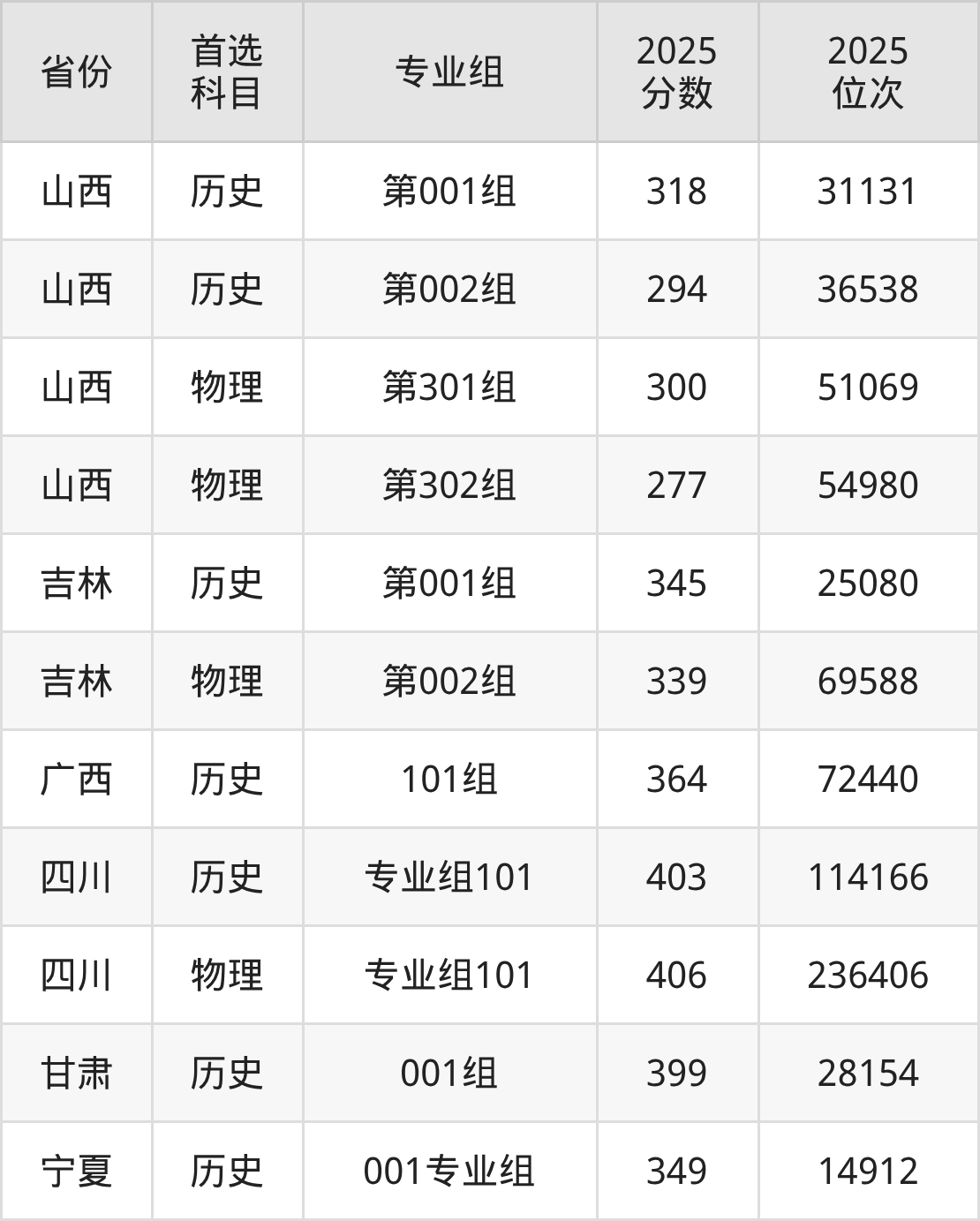 因为大部分地区目前只公布了院校(专业组)分数线,为了方便2026年考生参考,本文就整理出忻州职业技术学院在全国各省不同科类的最低分: