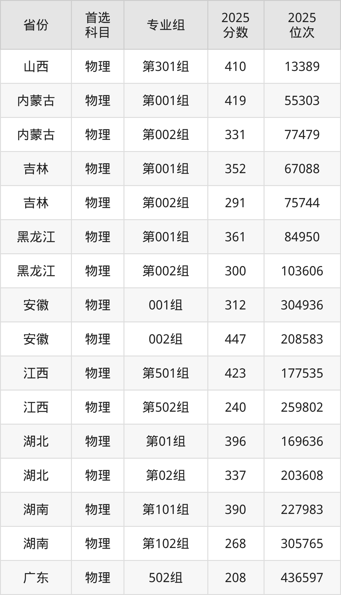 13.广东:物理类208分、436597位