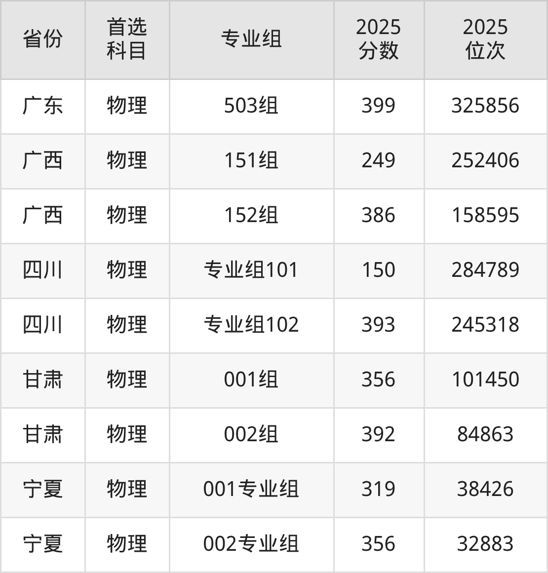 16.四川:物理类150分、284789位